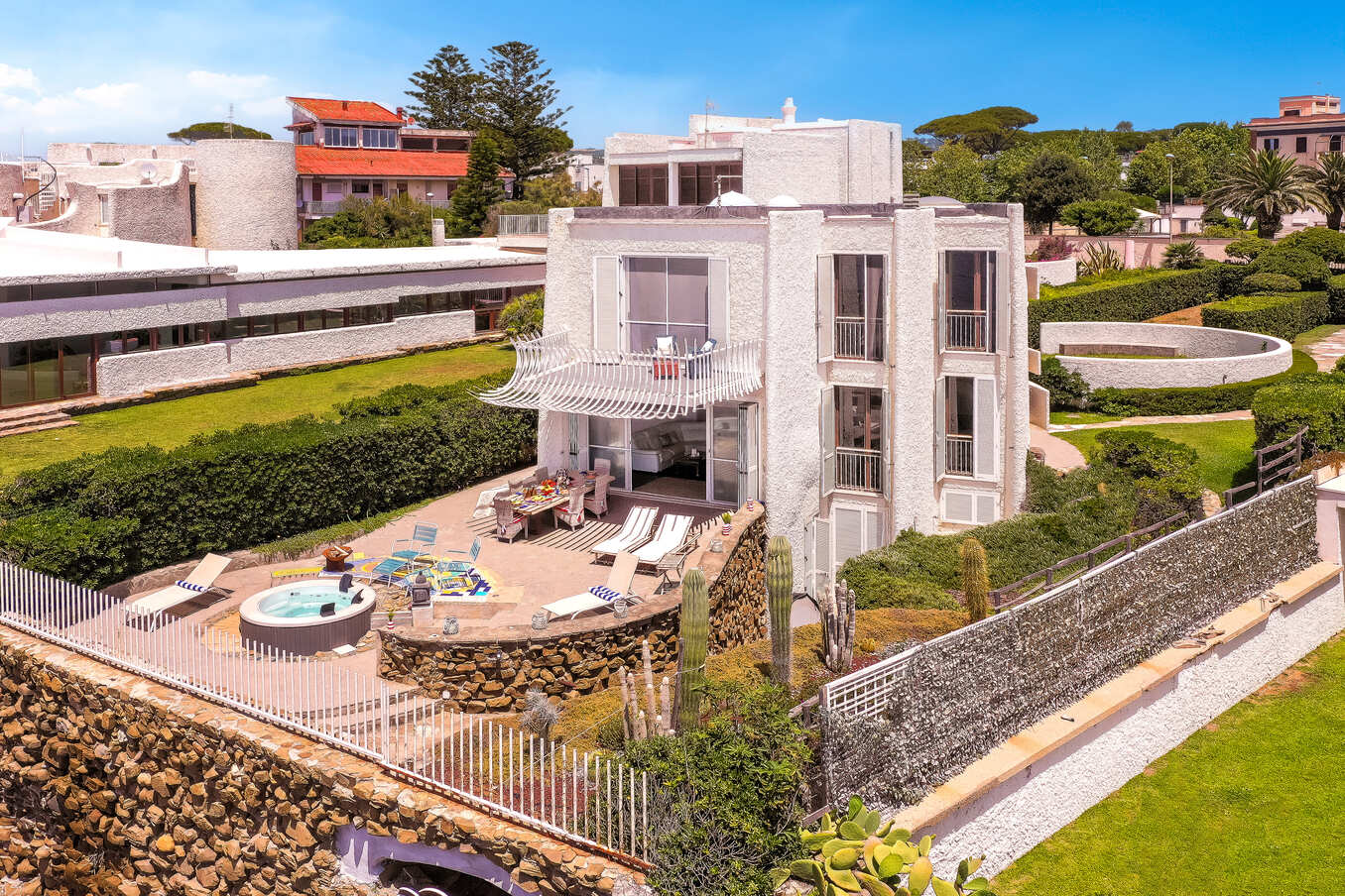 In Santa Marinella, amidst organic forms and plastic volumes seemingly sculpted by the wind and sand, Villa La Califfarecall in everything the more famous and neighbouring Villa Saracena by the same Moretti (1957), of which the building now on the property market seems a lovely "little sister". Read more