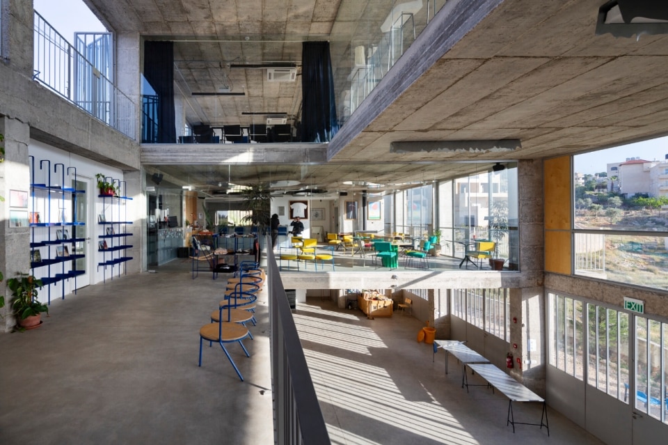 In Bethlehem, overlooking the Al-Karkafeh Valley, the Wonder Cabinet is a three-story building dedicated to creativity and craft production. Designed as a nonprofit space, it integrates workshops, offices, café, restaurant and a performance area in the basement. Its architecture emphasizes transparency: glazed partitions connect different functions, while a central void connects the levels and accompanies the gaze to the outdoor landscape. Local artisans contributed to the furnishings and finishes, making the building a manifesto of Palestinian cultural production as a form of resistance and self-assertion.