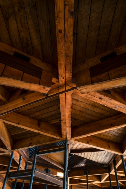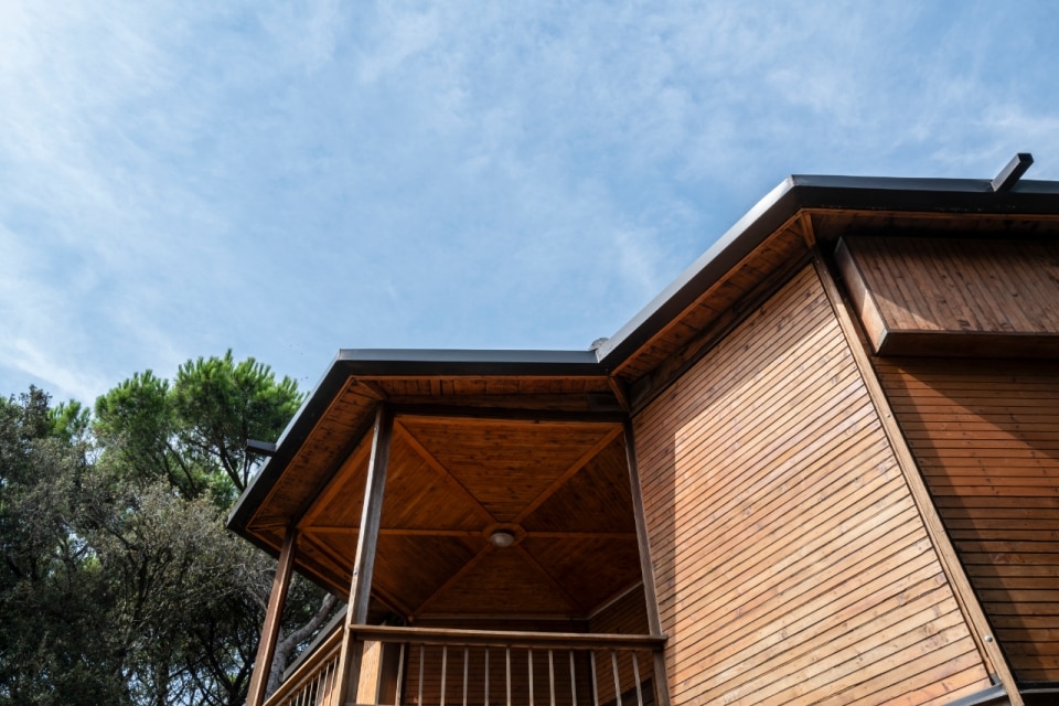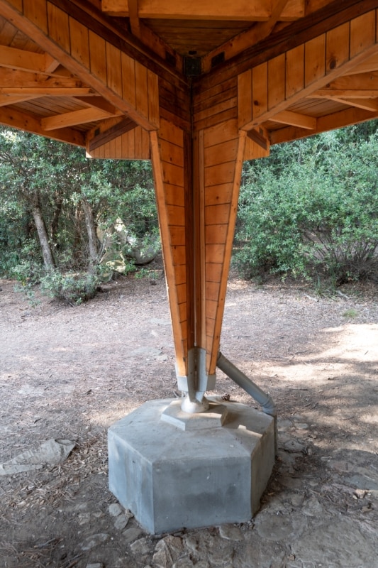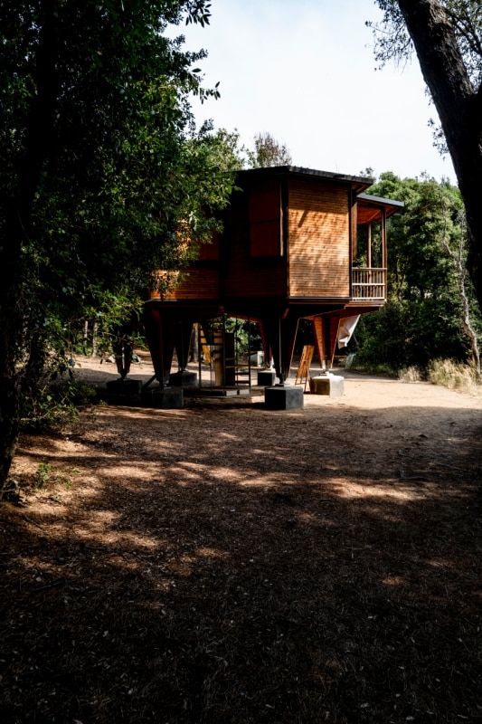 The design attempts to systematize a vernacular architectural language, yet one in which spontaneity yields to technical expertise and its precise control. The detailed study of each prefabricated element, of the interlocking floor-frame system, of the hinges connecting the pillars to their footings, and the many scale models produced – including one at full scale – demonstrate Giorgini’s meticulous approach. This precision also ensured that the house, assembled in a workshop in Peccioli, near Pisa, in 1960, could be dismantled, transported to Baratti, and reassembled in just over a week.
