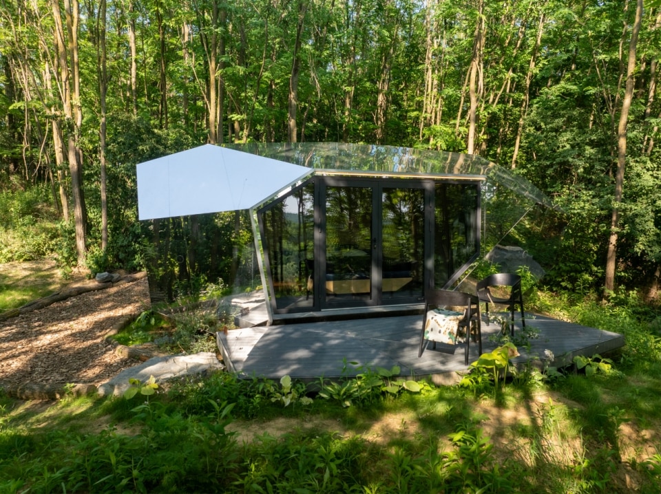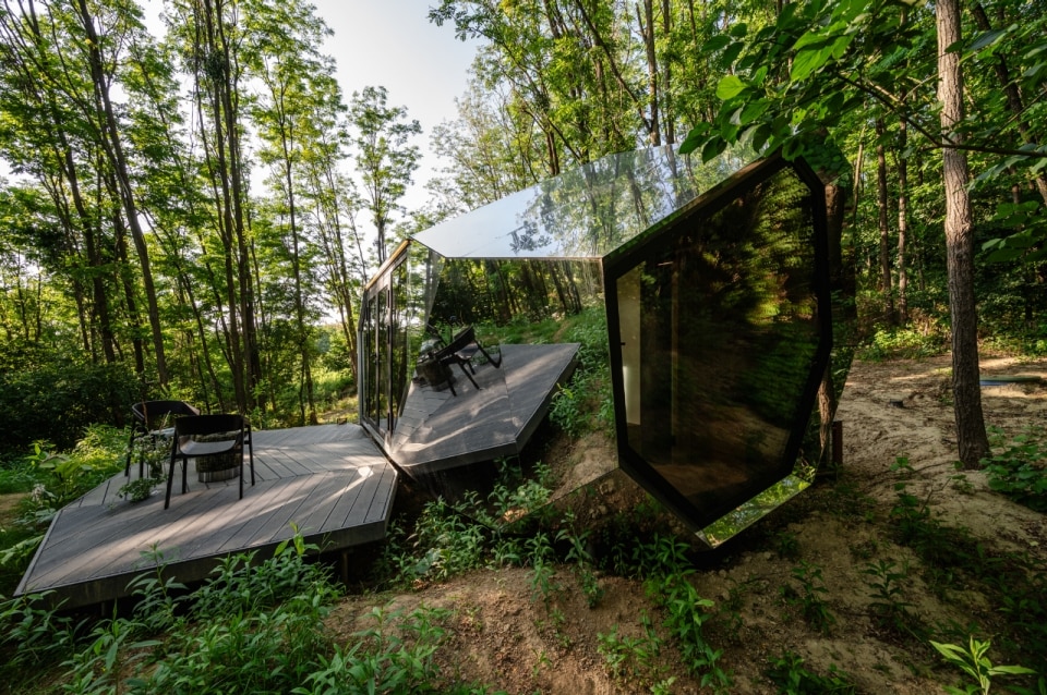 A prefabricated polygonal object is the newest addition to the evolution of the temporary tiny house, winking at glamping rather than emergency housing. Read more