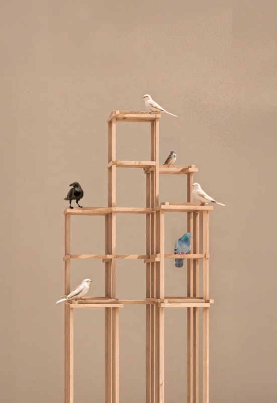 The micro-houses for birds designed by Norman Foster, Renzo Piano, Sejima