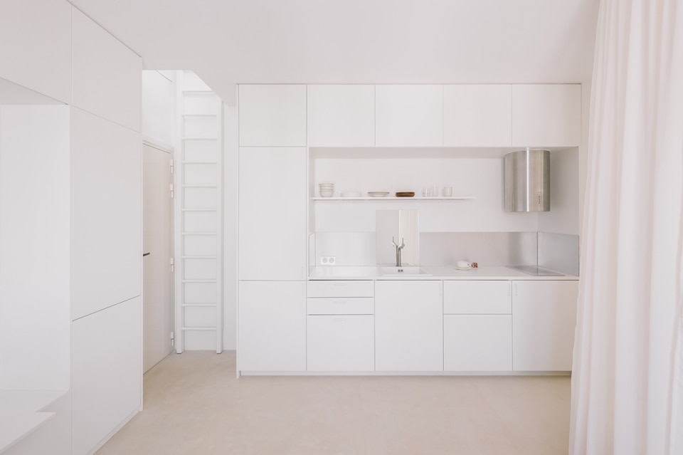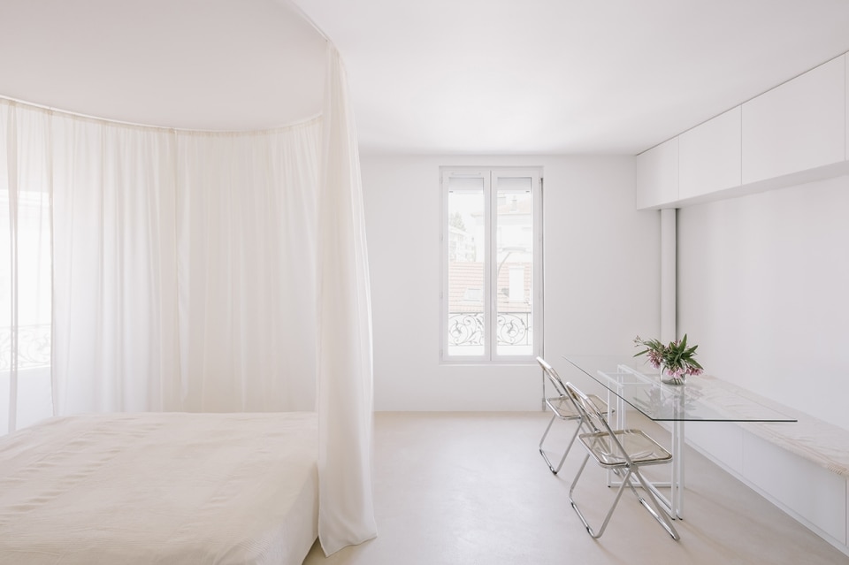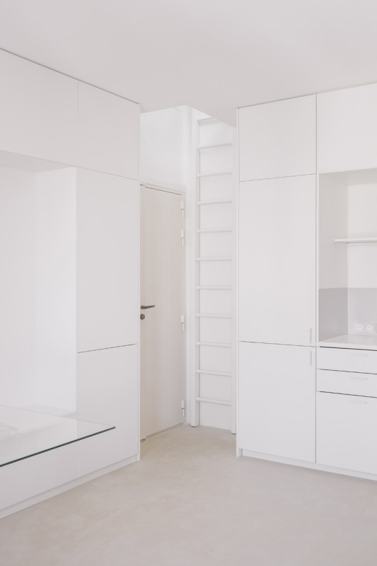 Located on the top floor of a 1920s building in the Paris suburbs, this one-room apartment with a mansard roof has been designed to minimise domestic elements, creating a bright and fluid space. Read more