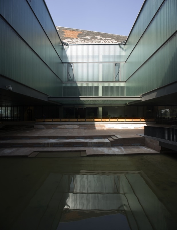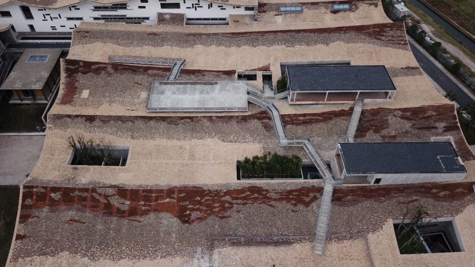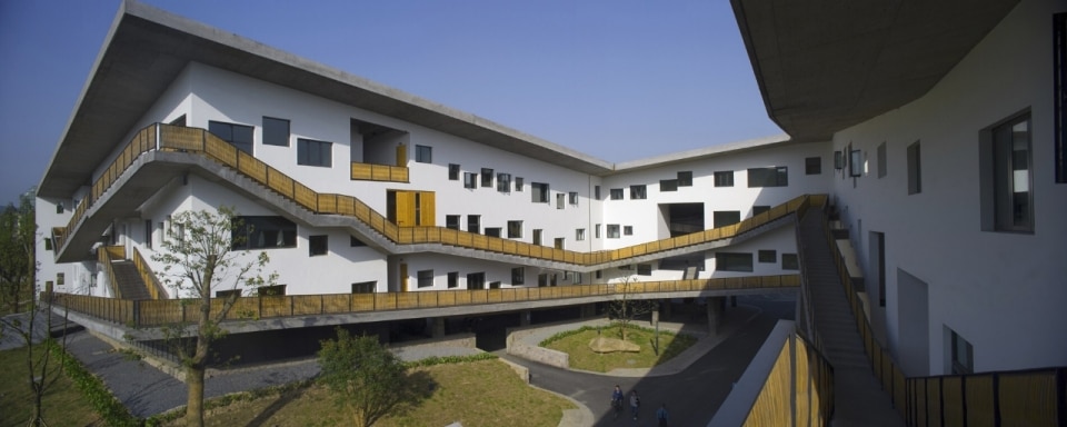 Outdoor spaces, too, are often reinterpretations of Chinese tradition: the famous Jiangnan gardens—idealized micro-landscapes typical of regions south of the Yangtze River—are reimagined in the campus spaces, as well as in projects such as the Ceramic House (2005) in Jinhua. Even the pictorial tradition enters the work of Amateur Architecture Studio, as in the Fuyang Cultural Complex, inspired by a celebrated painting created in the mid-14th century.