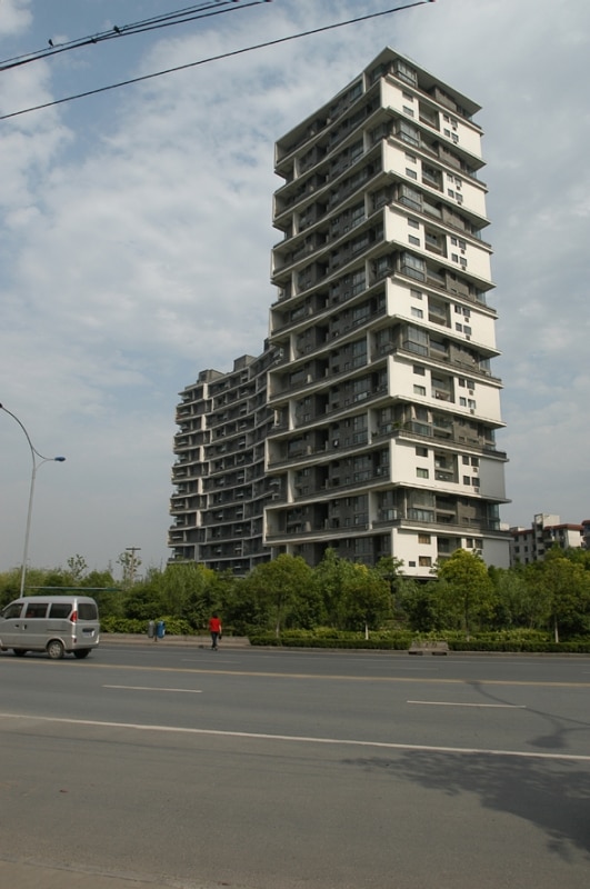 Designed in 2001 and completed in 2007, the Vertical Courtyard Apartments in Hangzhou represent an experimental attempt to reinterpret large-scale collective housing through an architectural language that seeks humanity at height. Rather than anonymous towers or attention-seeking forms, Wang Shu and Lu Wenyu designed a group of six buildings in which each dwelling has access to a shared courtyard. The aim, in the designers’ own words, was to “overcome the isolation typical of high-rise residential buildings while preserving the living experience of the traditional two-story courtyard,” effectively translating the idea of the Chinese courtyard into a vertical dimension.