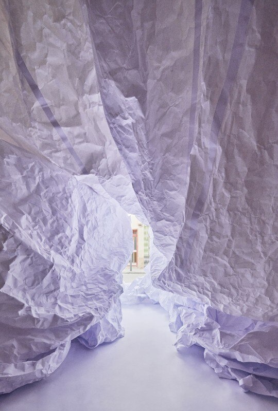 For the interior, TAKK used more than 1,500 linear meters of fabric, exploring its expressive and formal possibilities.