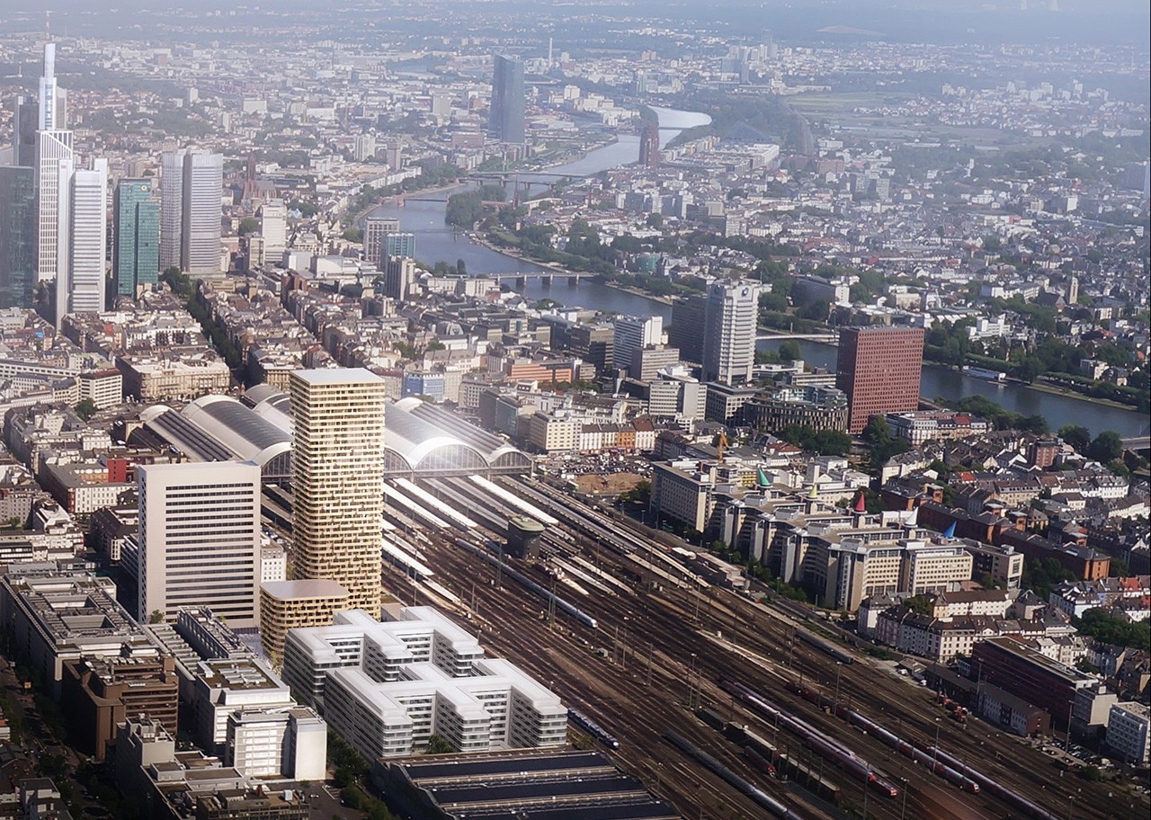 Grand Central rises just north of the tracks of Central Station, a few minutes' walk from the heart of the city’s financial district. It is one of a large group of skyscrapers by high-profile architects being built in Frankfurt in anticipation of a post-Brexit business boom as financial services move their headquarters from London. Skyline Atlas, a site dedicated to documenting the growth of city horizons, estimates there are 29 skyscrapers currently under construction in the city with completion dates in the next five years – and several more expected to break ground this year.
