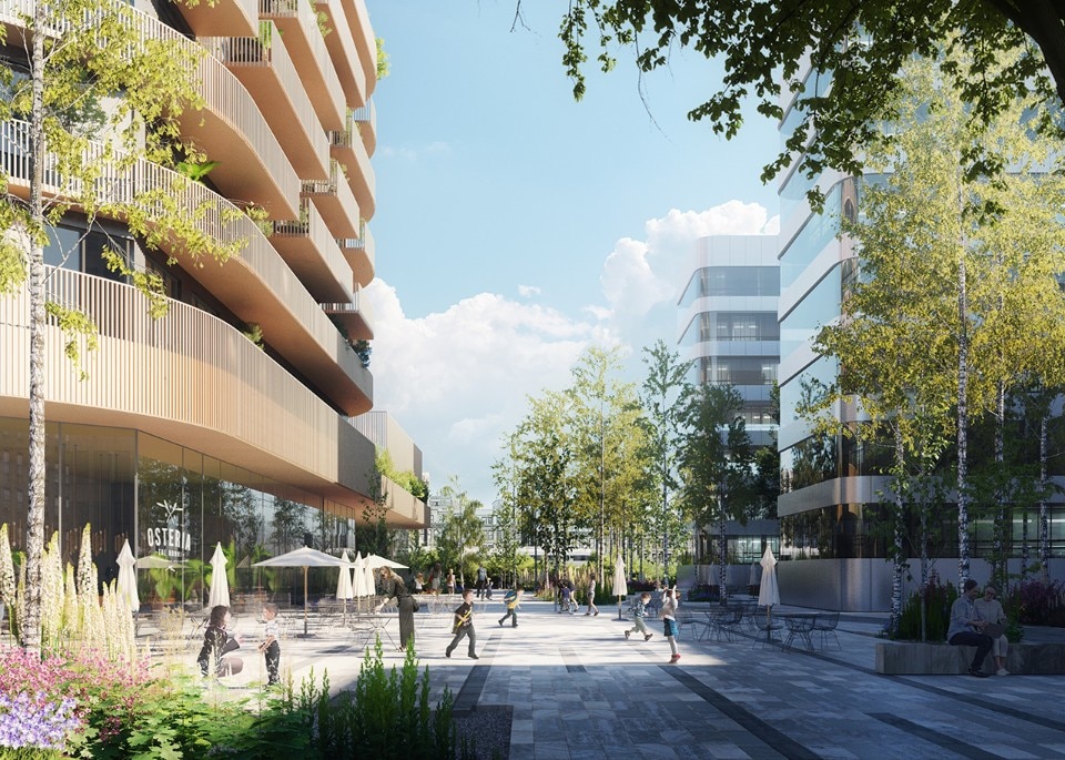 “The arrival of the new residential tower with flexible workspaces, retail, catering, fitness and a kindergarten will be an important impetus for the transformation of this currently business-focussed area into a mixed neighbourhood for living and working,” says Mecanoo.