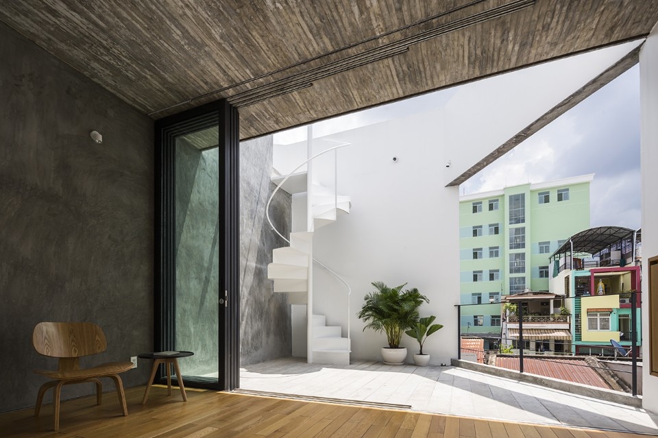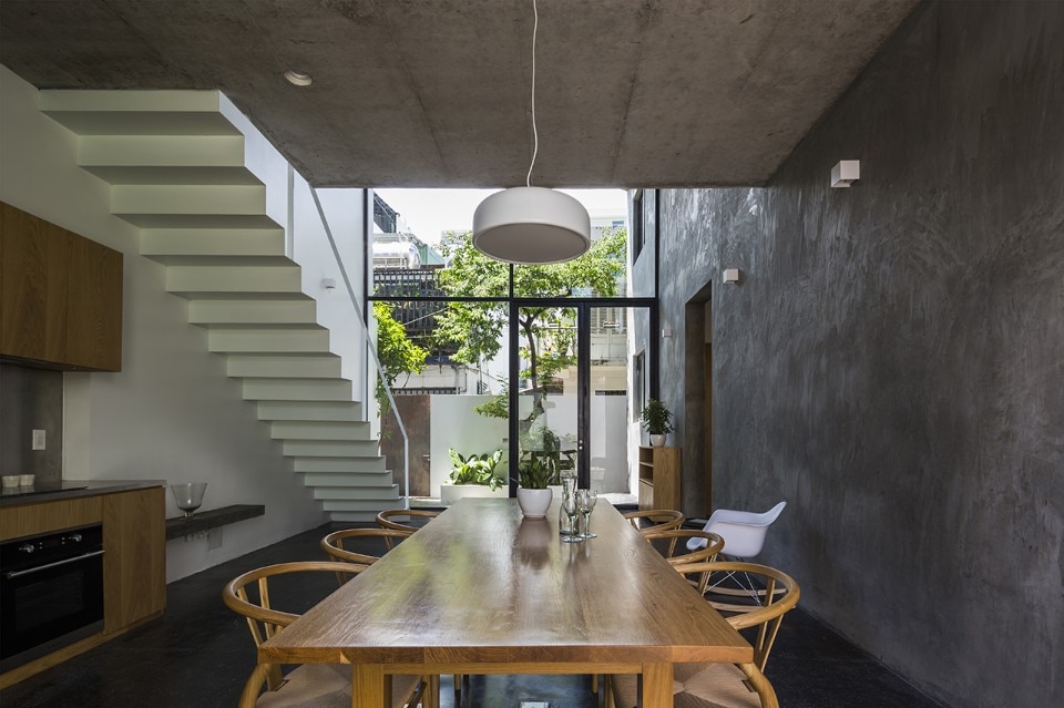 Within the astonishingly thick density of Ho Chi Minh City’s 10 district, a contemporary house looks for its own space and sun. Sanuki Daisuke Architects’ design for the NGA House is located in a small lot, accessible through a barely 1-meter-wide alley.