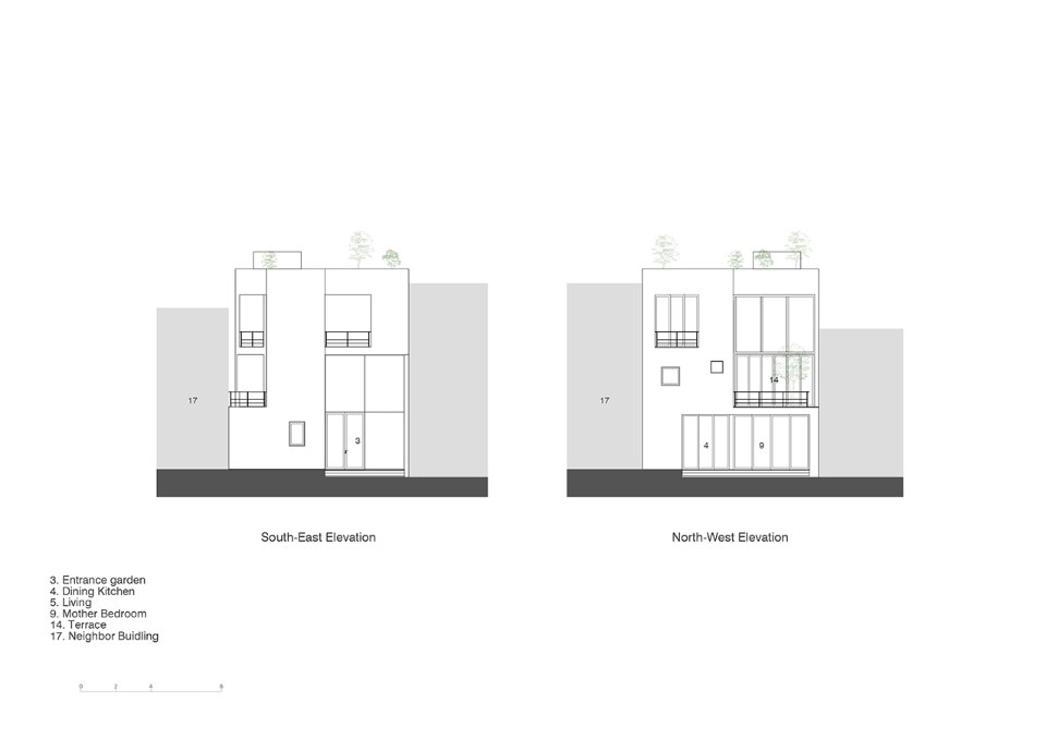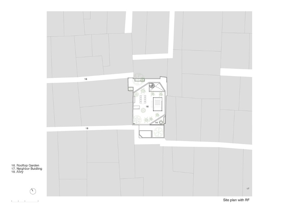 Large fair-faced concrete surfaces fade the boundaries between the inside and the outside: the little garden, the balconies and the rooftop are the most luxurious commodities that the house offers to its dwellers, the only possible voids into the city’s solid urban fabric.