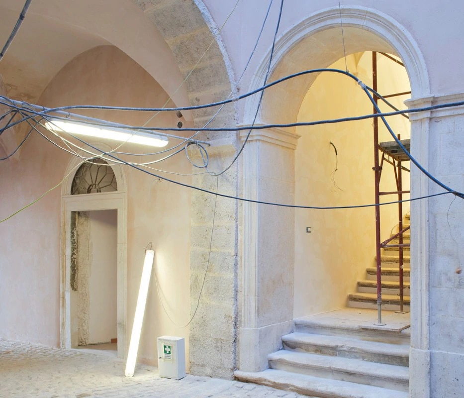 L’Aquila today is a complex place undergoing continual changes of form, with modifications to social spaces, and with lights and sounds that have slowly begun to alternate with the noise from the construction sites. Perhaps it will become a whole new town? What would you find if you went for a walk across L’Aquila’s historic centre? It’s difficult to pinpoint the streets and the piazzas, just as it’s often difficult to cross them or enjoy them. The redevelopment of the sites, which for years have been deposit areas for materials and objects, remains far from the idea of the public space. Historic palazzos wrapped in metallic structures alternate with shining facades that need the patina of time.