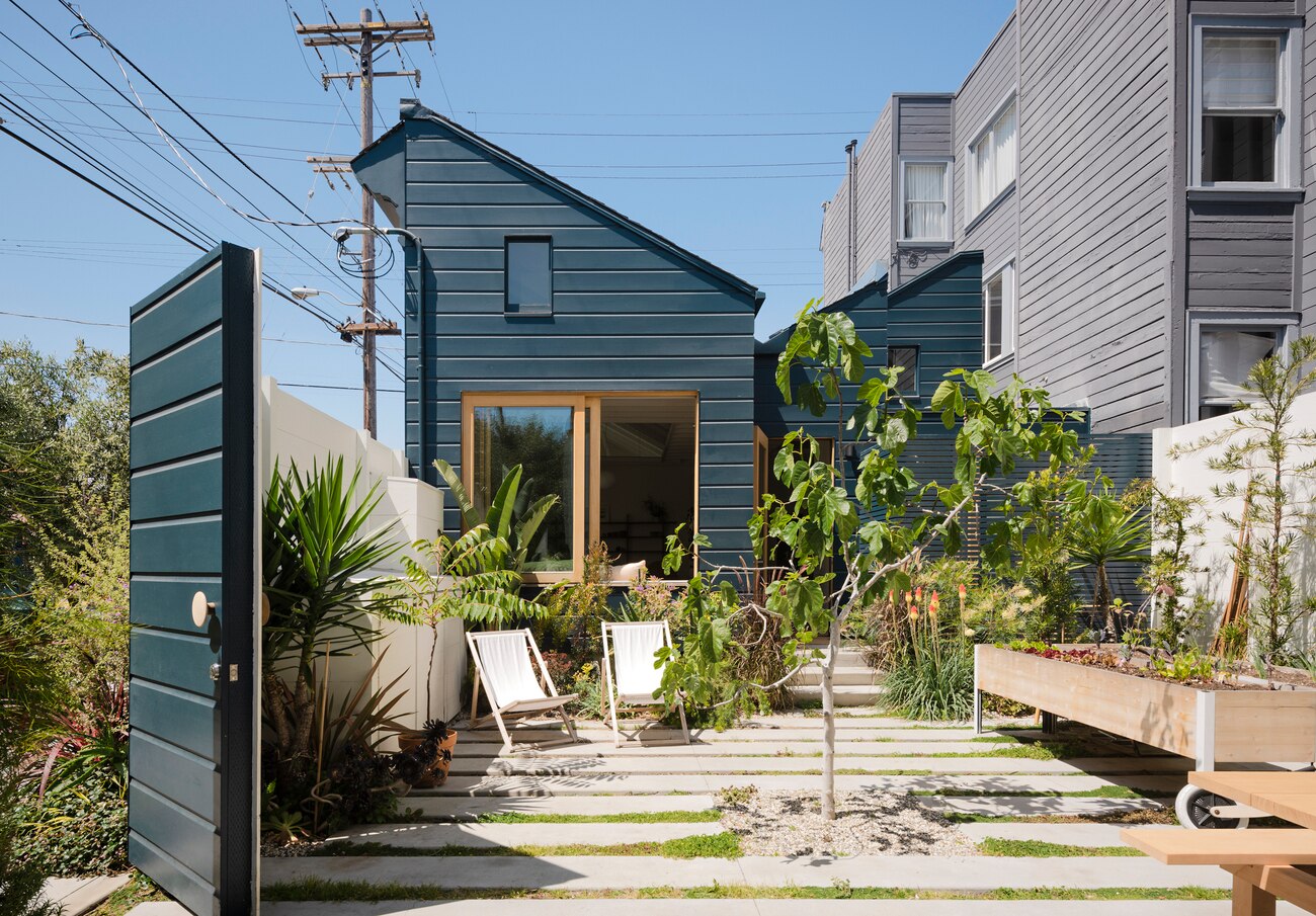 San Francisco. Two buildings, joined by a garden and bordered by a fence create a new home