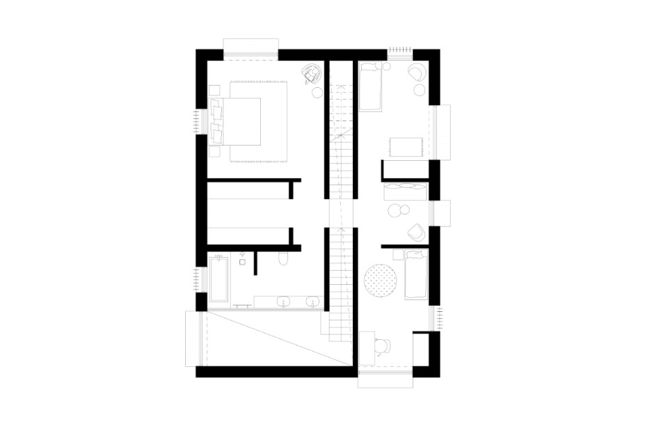 In this context Bornstein Lyckefors Architects have designed a three-storey single-family house, characterised by geometric rigour and an iconic form of a single volume with a pitched roof pierced by large openings.