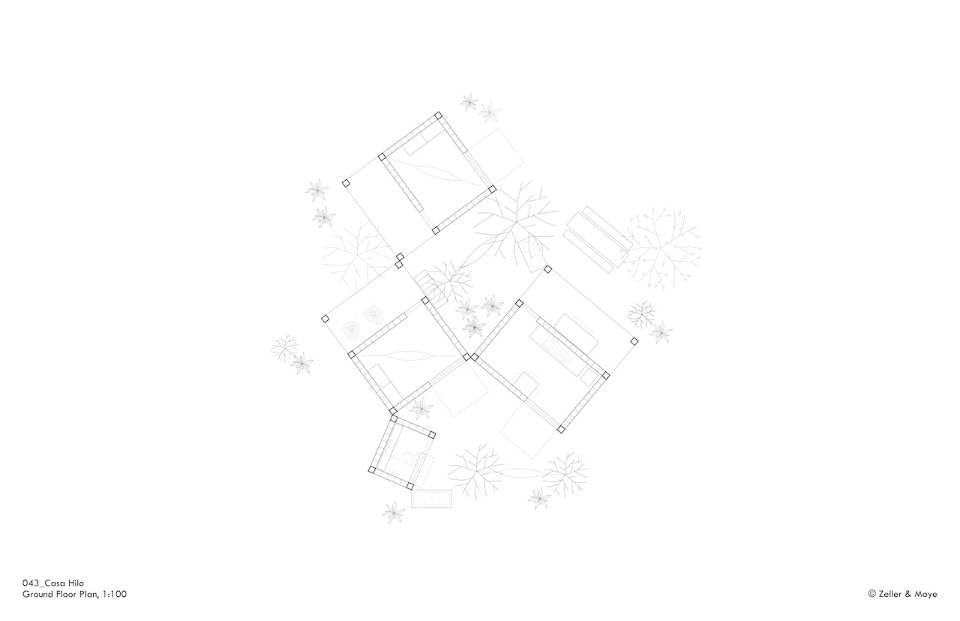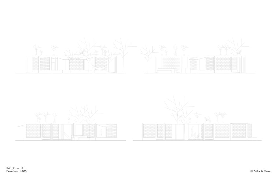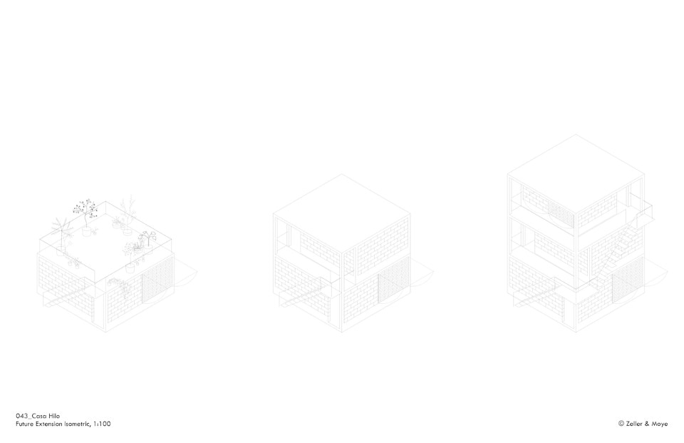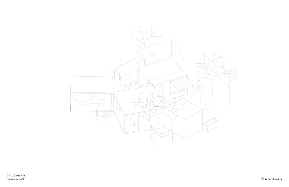 Zeller & Moye architects completed Casa Hilo, a single-family housing prototype providing optimised performance in warm climates. Located in Coquimatlán, Mexico, the residence is a composition of boxes, slightly rotated from each other. The prototyped boxes can be combined in different ways to adapt to various needs. Each volume is provided with an entrance door and a roof terrace. The rooms of Casa Hilo can be accessed from the surrounding garden.