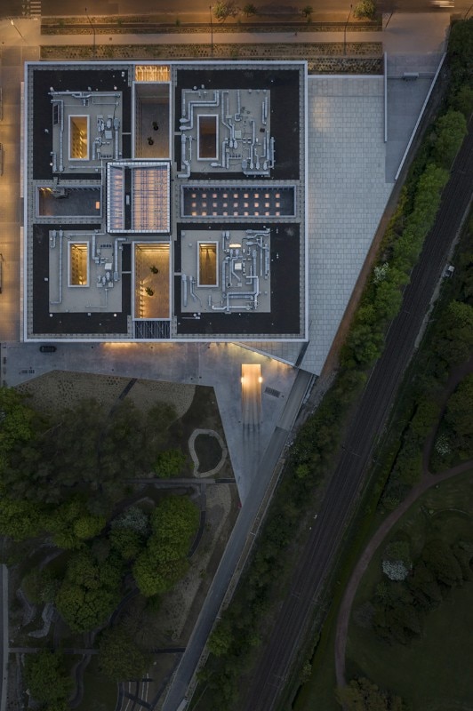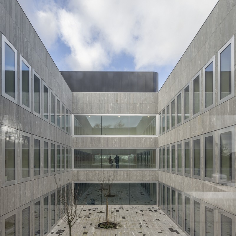 With its large size – a square plan of 80x80m – the structure manages to create an autonomous and attractive context. In the future, the project area will be completed by a complex of five residential buildings and a park that will extend the nearby Jardin des Plantes de Lille.