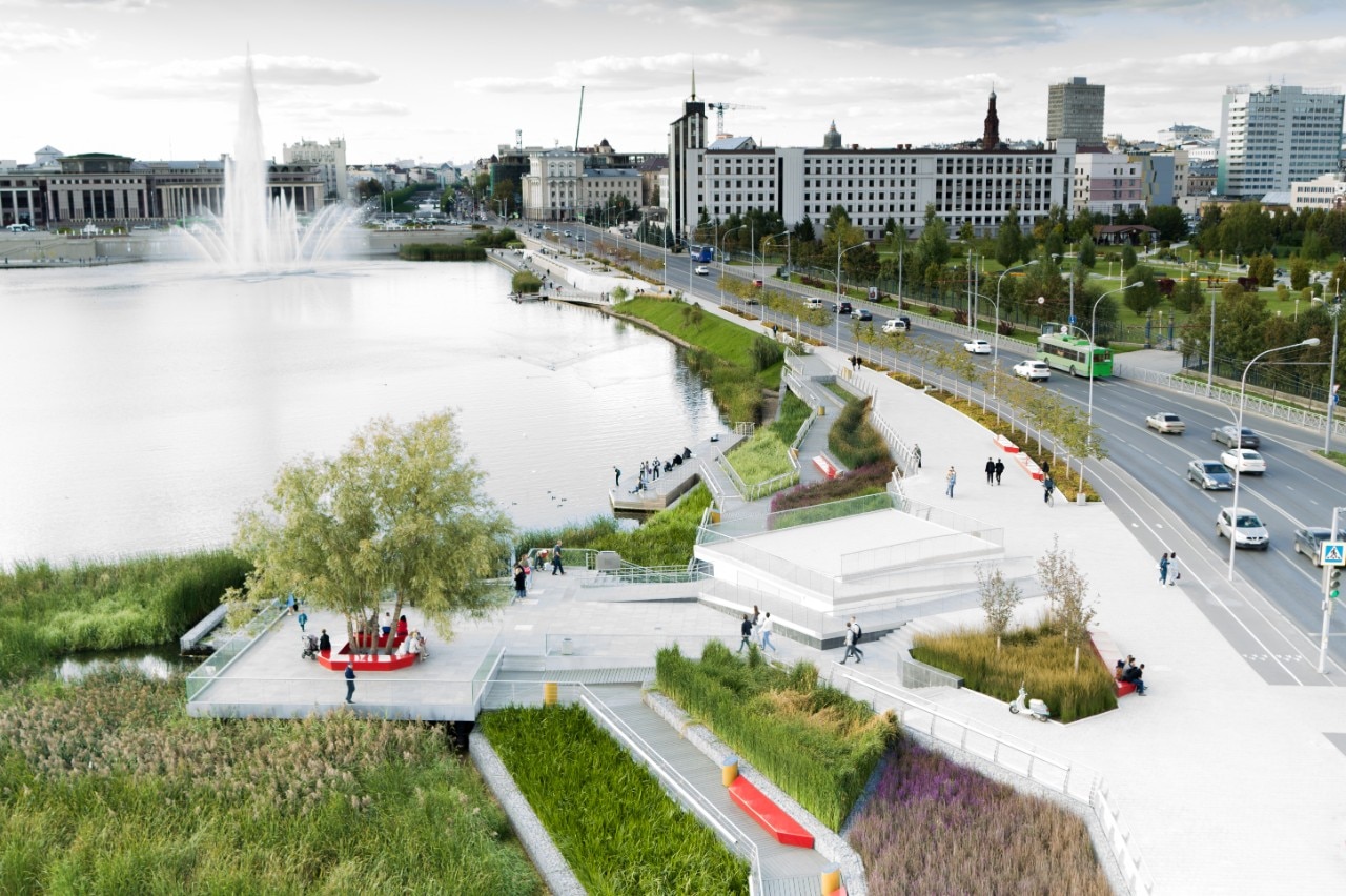 White Flowers Boulevard, construction 2018-ongoing, architects: Group 28, area: 1,7 ha. Uritsky Park, construction 2015-2017, area: 15 he. Gorninsko-Ometevsky Forest, construction 2016-2018, area: 87,4 he. Lake Kaban Enbankment, construction 2017-ongoing, achitects: Turenscape (China) and MAP (Russia), area: 8,7 he.