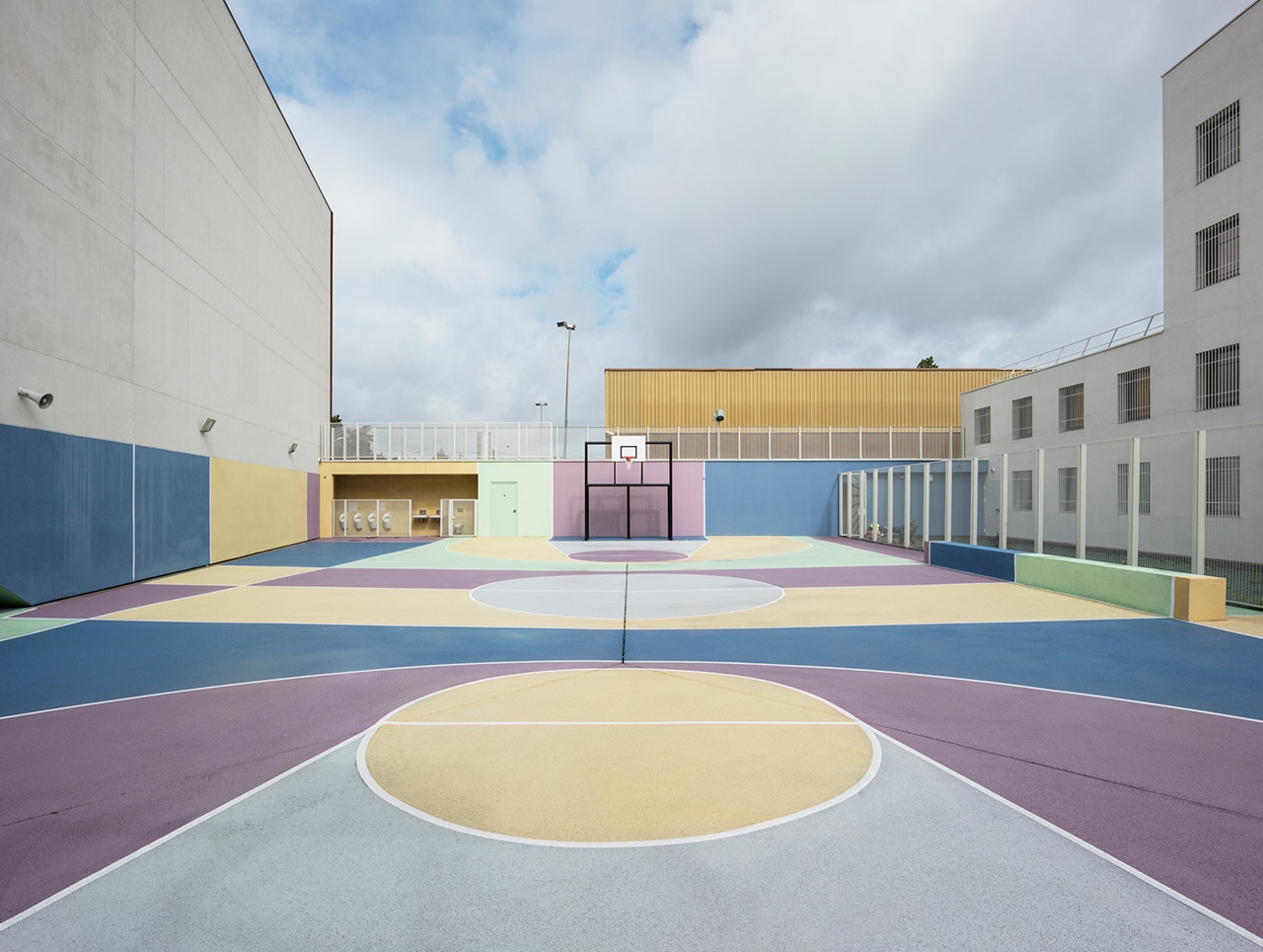The intentions of the project are to make imprisonment less radical, integrating the complex into the urban fabric of Nanterre through three strategies: facades instead of walls (on two sides of the plot), a more fluid passage between inside and outside, distribution of volume that links the various scales. Despite this, the building is necessarily introverted, mute on the ground floor and with 89 cells looking towards the central courtyard. The section overlooking the street is – obviously – occupied by the institute’s offices. From the outside Nanterre prison looks like a severe monolith that does not hide its nature, despite the contemporary architectural language. The barriers remain, the barbed wire as well. Are these architectural expedients enough to make detention less drastic? Will the decorations in the playground be enough to colour the prisoners’ days?