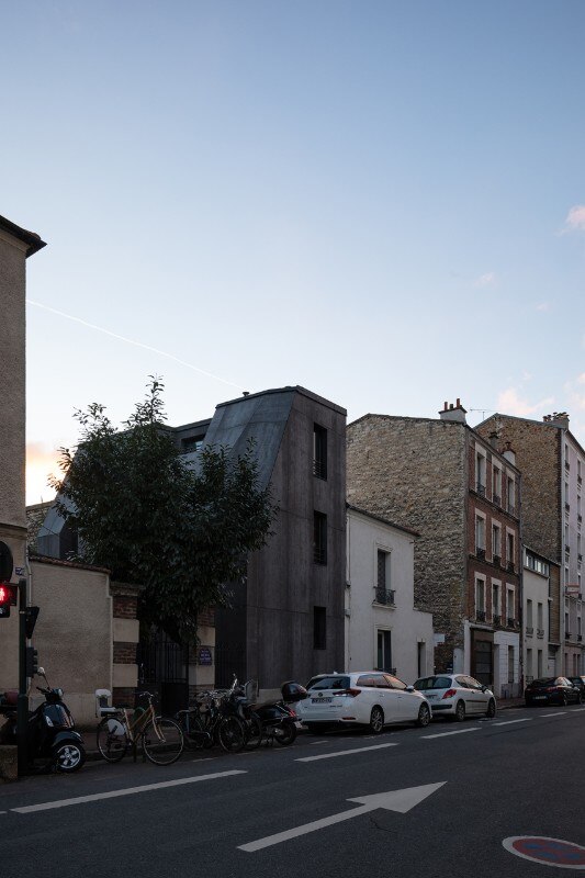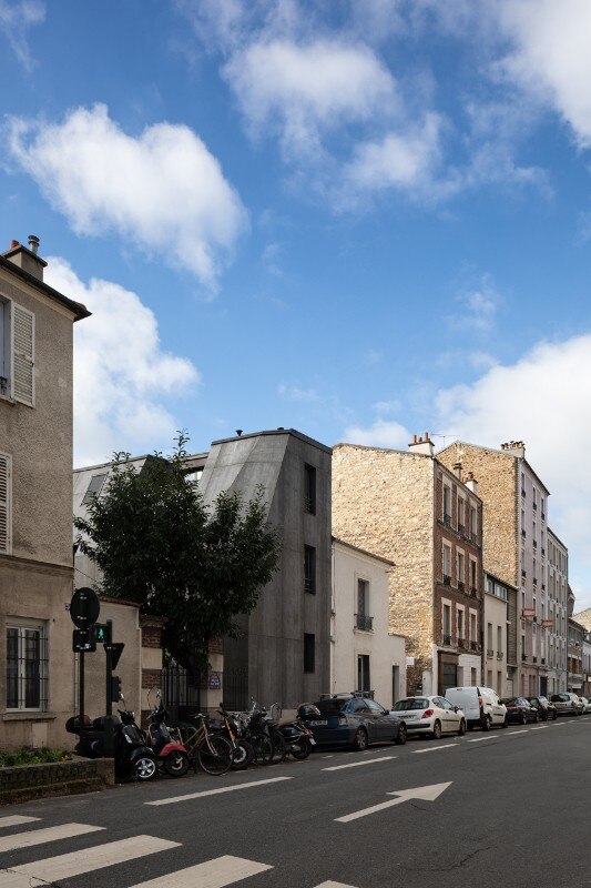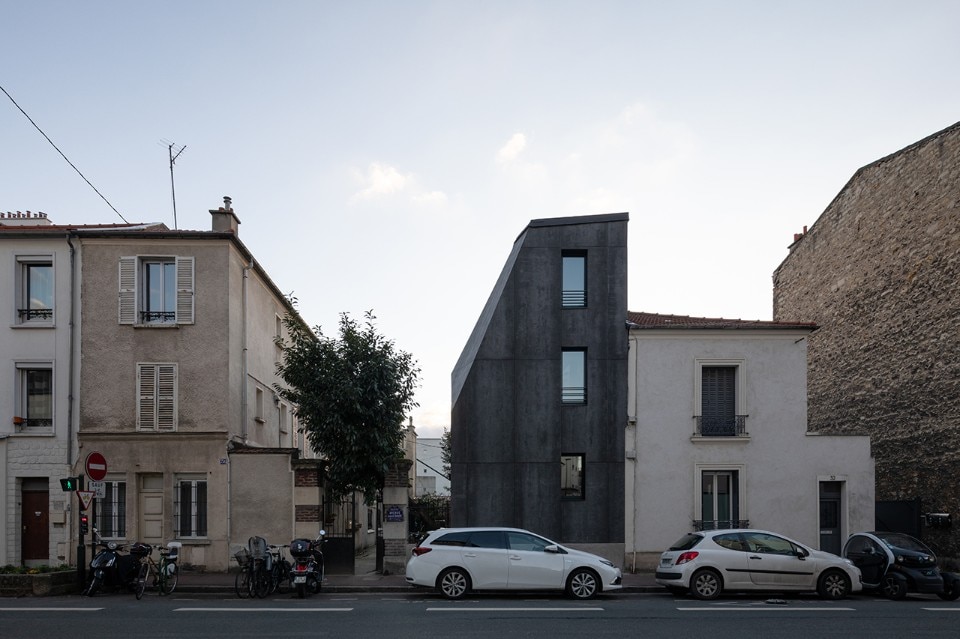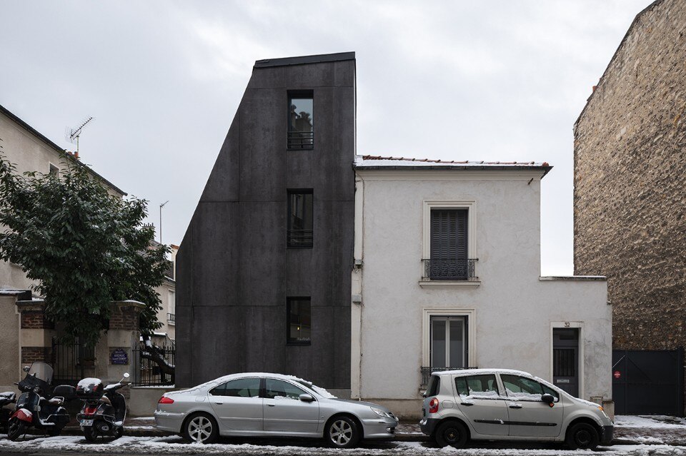 Tectône architectes’ design for the renovation and the extension of a house in Malakoff, a little municipality within Paris’s première couronne, adds to this history. The required program is conventional: domestic spaces are re-organized in order to maximize their performances, and additional rooms and services are hosted inside the extra-stories. More experimental solutions are adopted in terms of technology and architectural language.