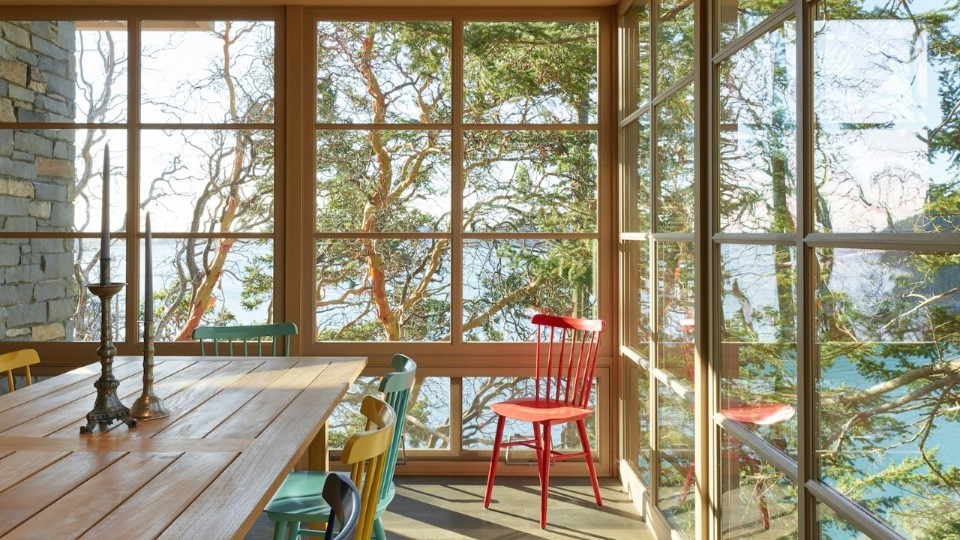 Hillside Sancutuary and Hillside Retreat built in stone, wood and glass, a vacation home and guest house respectively, stand in perfect harmony with the wild landscape of the San Juan islands in the North-west corner of the United States.