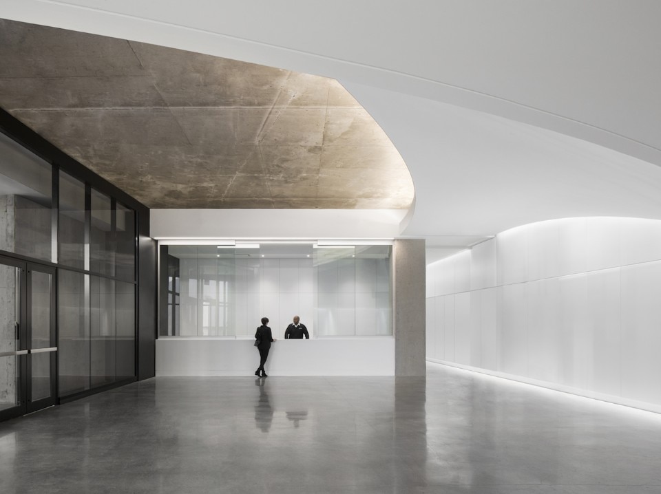 Provencher_Roy studio has worked on the renovation of the Olympic Tower for Montreal, Canada, originally designed by architect Roger Taillibert to accommodate sports federations. Left unoccupied since 1987, the building hosts now the offices of Desjardins, one of the largest financial institutions in Quebec, distributed on seven of the twelve floors. Aiming to provide a lighter space, the multidisciplinary firm added a glass curtain wall – that covers 60% of the facade – and removed the existing prefabricated concrete envelope.