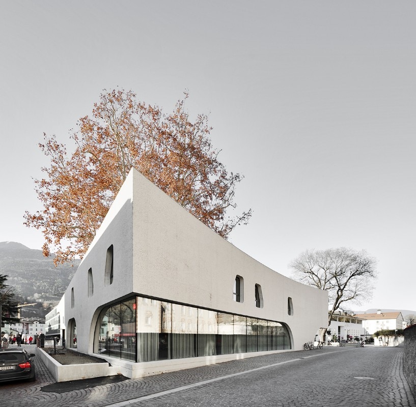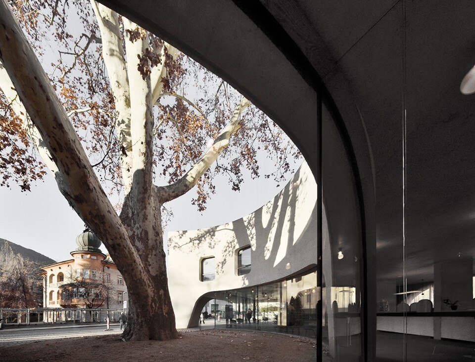 Italian architectural firm MoDusArchitects designed TreeHugger, a Tourist Information Office in Bressanone, Bolzano. Winner of an international competition in 2016, the building acts as a gateway for the city and offers references to the Bishop’s Palace and the Chinese and Japanese pavilions located at the corner of the Palace gardens – whose curved shapes have been reinterpreted in the project.