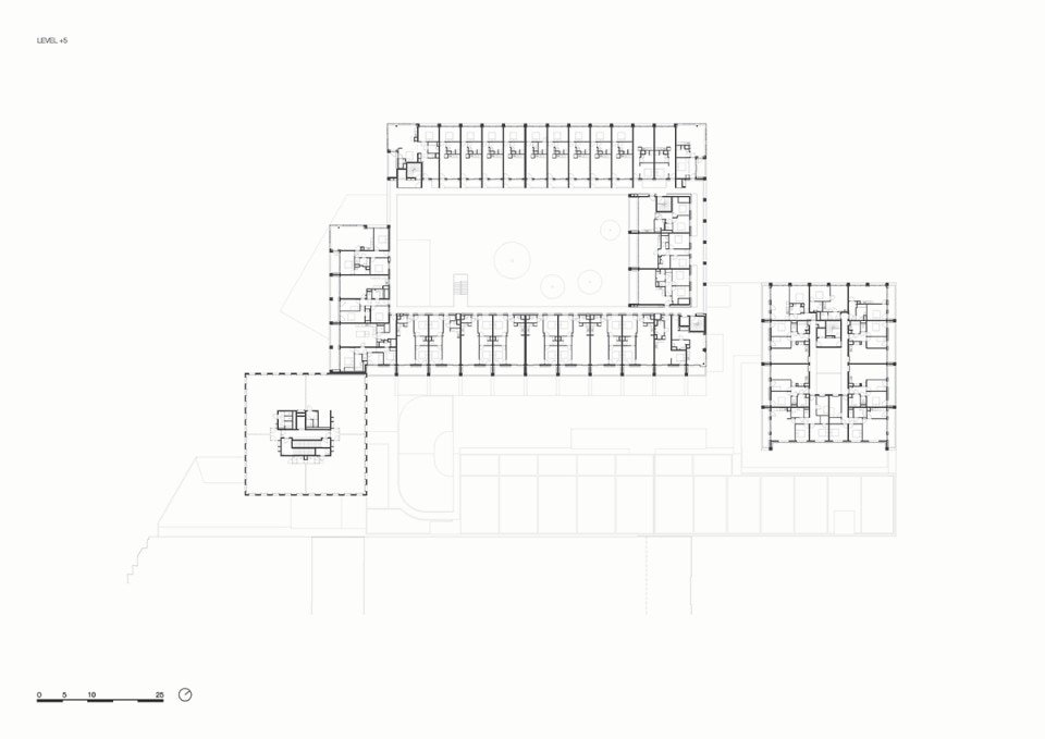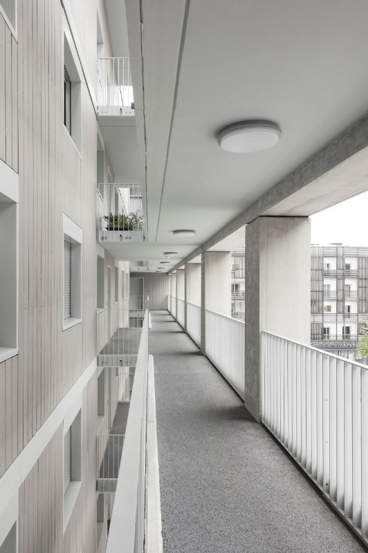 On the northwest side of the block, there is a residential building distributed with a walkway to minimize the footprint of the staircases. On the east side, instead, the edifice dedicated to social housing is also a courtyard building, which gives each housing unit a double exposure and a loggia that, depending on the orientation, looks towards the city or the inner courtyard. Finally, on the south-west side, to complete the urban landscape, it has been inserted a block that houses offices.