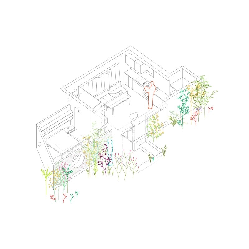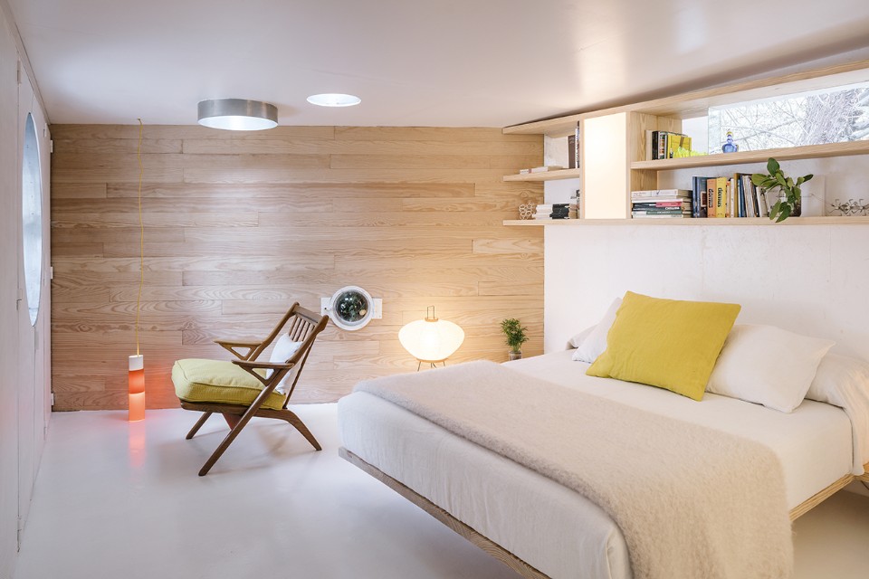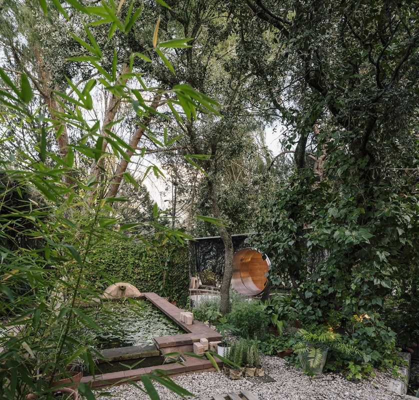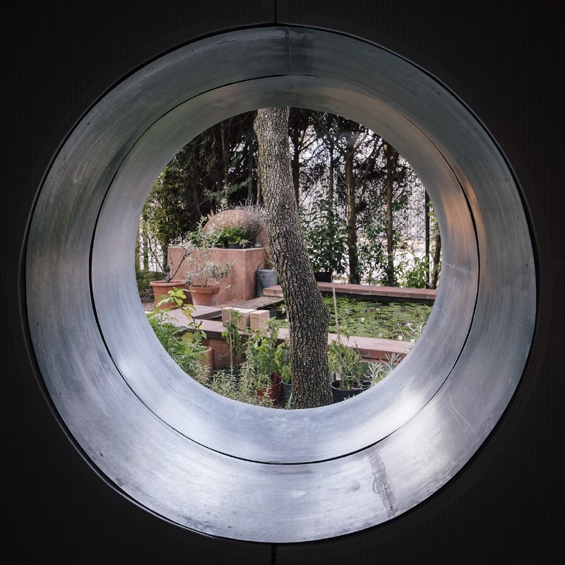 The studio has renovated an old wooden hut, previously used as a painting workshop, to which is added a new small chameleonic volume. Instead of opening up completely to the outdoor space with large windows, the house allows a glimpse of its interior spaces only through a small porthole.