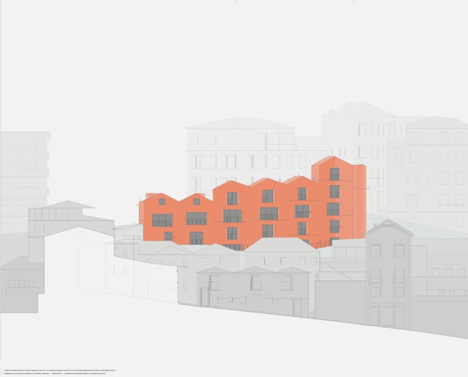 On the southern shore of Porto, the historic centre of Vila Nova de Gaia is an area known locally for its centuries-old wine cellars and an architectural landscape made up of small residential buildings with sloping roofs of red clay tiles, a feature to be replicated in any new project in accordance with the strict municipal regulations.