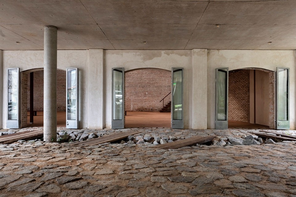 Hao, therefore, chooses to leave the ground floor of the pavilion – a prelude to the pre-existing building – totally open, directly connecting the street and its multiplicity of activities. The same search for openness can be retraced in the metal roof of the old building, which covers an ample, unique space and has been replaced in some parts by transparent acrylic inserts.
