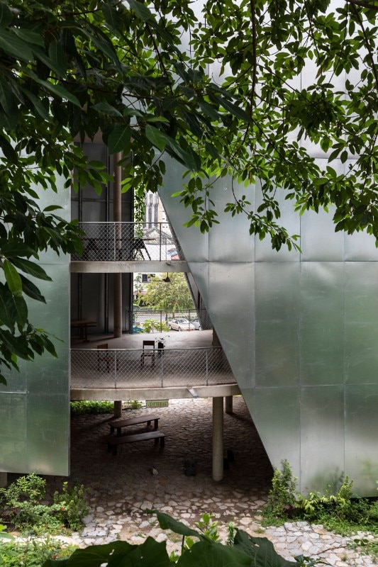 In Kuala Lumpur, between the confluence of the rivers Klang and Gombak, and Bukit Nanas – called locally “pineapple hill” – stands a new center for the arts. The Godown (this is its name) consists of a former colonial building dedicated to trading, and an extension. Ling Hao Architects designed the second one as a pavilion with an open and airy structure, although the materials used are concrete and 1.2 mm thick steel slabs.