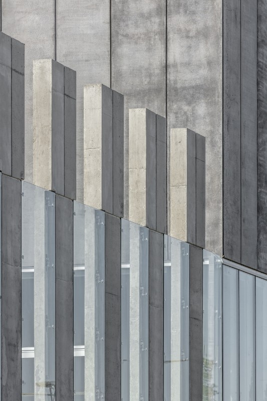 The outer shell can only be one of the characteristic elements of the project. It is defined by the different scansion of the panels - which also have a structural function - by their rudimentary nature, different tones and different surface treatments.