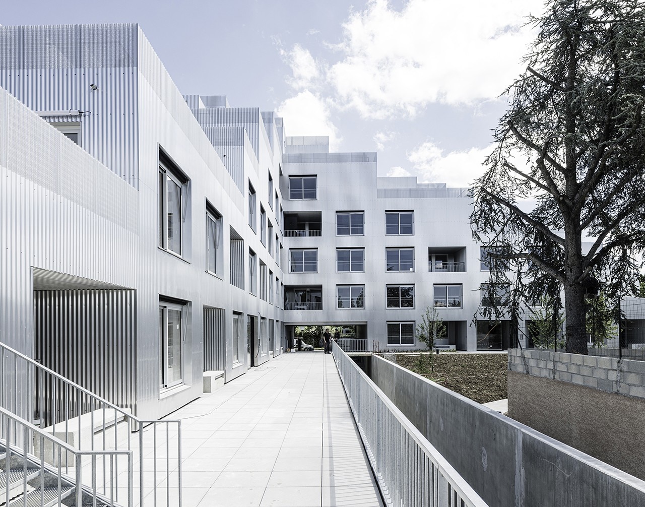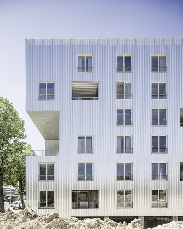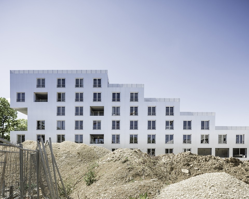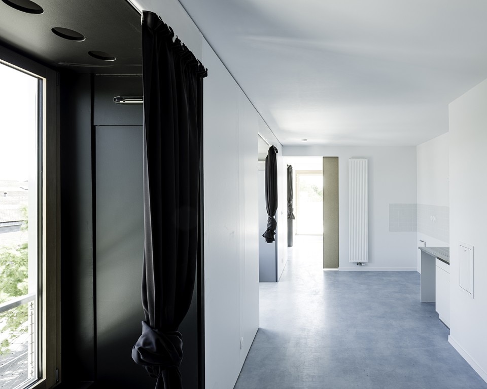 The residential building Résidence La Quadrata, recently completed by Sophie Delhay Architecte in Dijon, takes the room, rather than the dwelling, as its basic unit. Each room is set on the same square module, with a total surface of 13.6 square meters. A living room area corresponds to two modules, bedrooms and loggias to one module, kitchens and bathrooms to half a module.