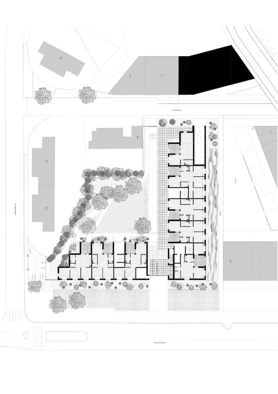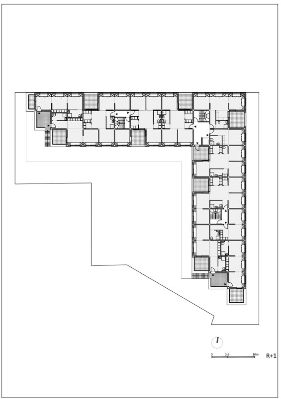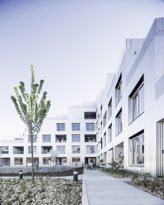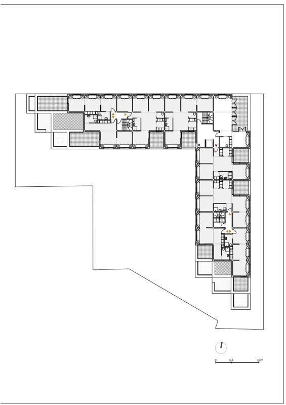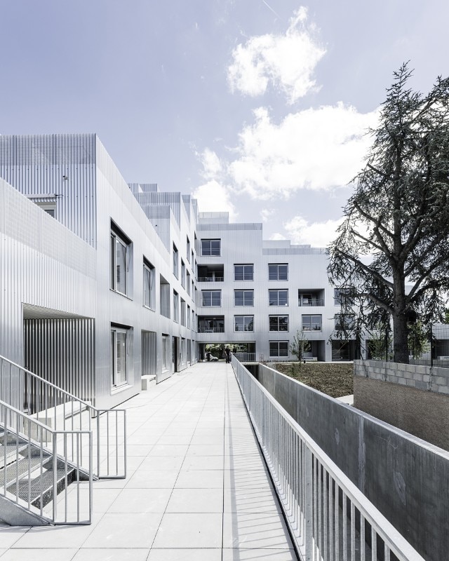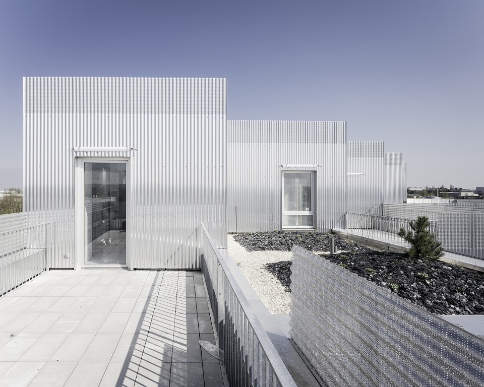 The residential building Résidence La Quadrata, recently completed by Sophie Delhay Architecte in Dijon, takes the room, rather than the dwelling, as its basic unit. Each room is set on the same square module, with a total surface of 13.6 square meters. A living room area corresponds to two modules, bedrooms and loggias to one module, kitchens and bathrooms to half a module.