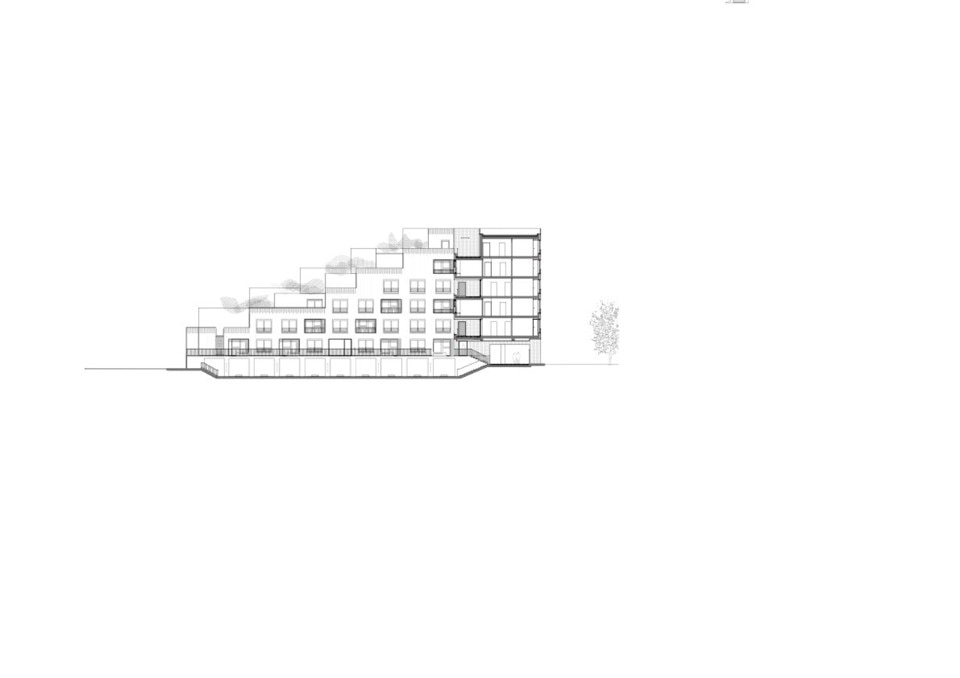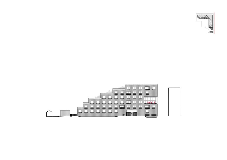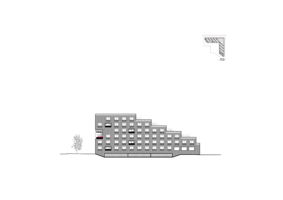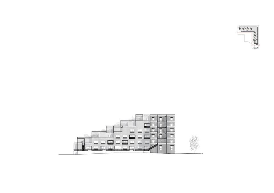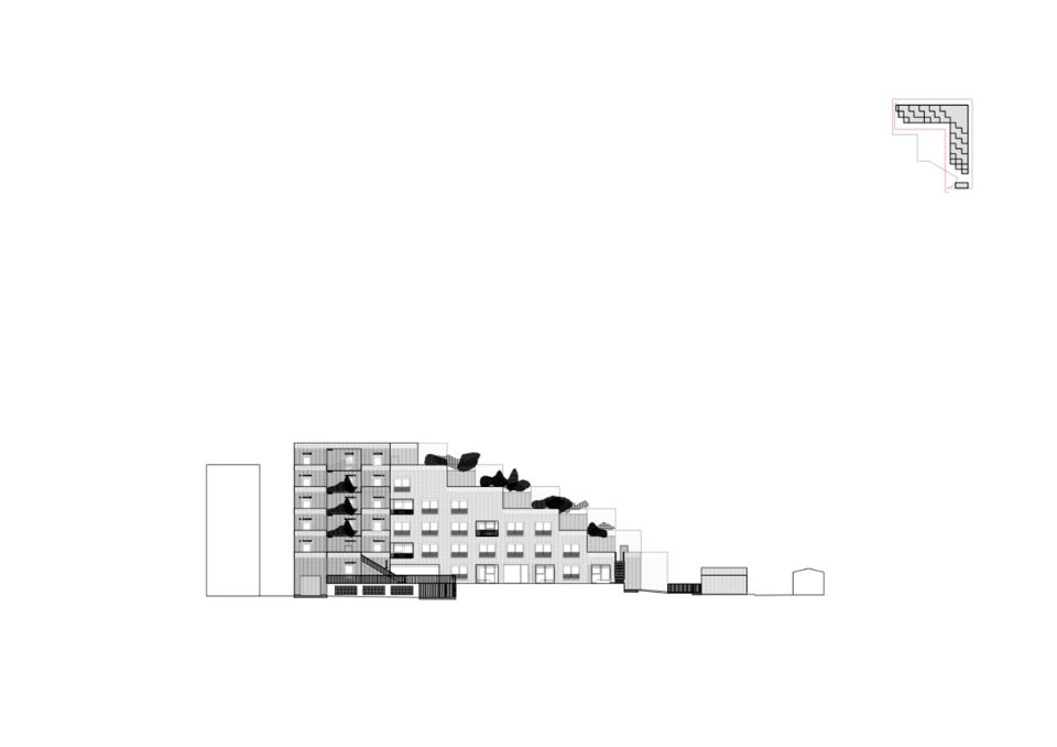 Façades are always three-dimensional and “inhabited”. Delhay highlights how storage areas framing the windows have two functions: on the one side, they allow to leave the interiors unobstructed by too many pieces of furniture; on the other side, they dissuade from covering glazed surfaces with objects of various kinds. This is an interesting strategy to suggest dwellers a virtuous use of their building, which would respect one of its main qualities, to their full advantage.