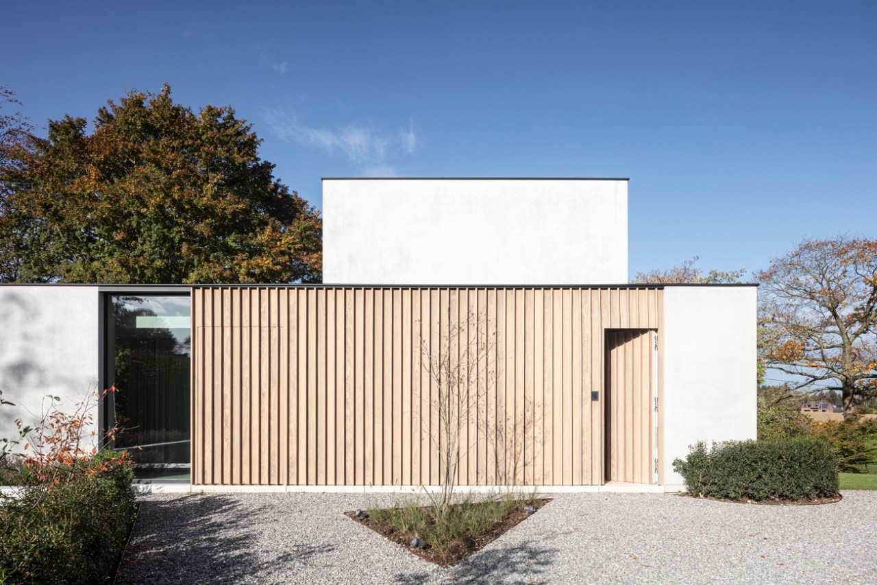 The house designed by Belgian studio Cas Architecten in Beersel, just a few kilometres from Brussels in the Flanders region, replaces an old, dilapidated pre-existing building. The architects make use of all the volume allowed to give shape to a house capable of perfectly responding to the lifestyle and needs of the family; a secluded area for teenage children, a fitness area with swimming pool for the father, a passionate triathlete, and a covered terrace for the mother who enjoys living outdoor.