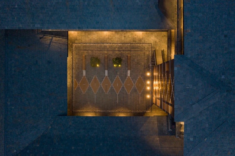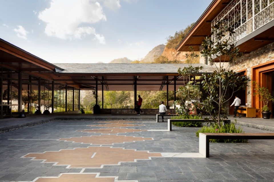 The layout of the complex follows the topography of the land and is inspired by the traditional Himalayan villages that developed around the Darbargadh: a temple-building that provided protection for the villagers in times of war and was used as a meeting place for community life in times of peace.
