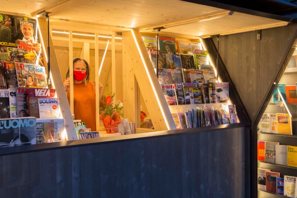 “Today there is a lot of talk about urban regeneration as a tool to give back to the community goods that have a positive impact on the values of social inclusion and integration” says Deborah Zani, CEO of Rubner Haus. “The newsstand as a place without doors or windows, which usually overlooks a square or a crossroads, is one of the emblematic spaces at the center of exchanges and relationships. Thinking about what the newsstand of the 21st century should be like has led us to think about three key concepts: environmental sustainability, sustainability of living and ethical-cultural sustainability that find a common denominator in the most sustainable building material, wood”.