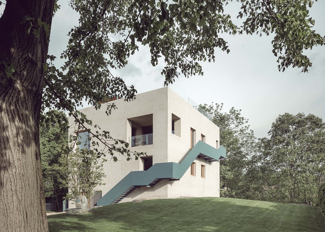 It hosts three units, three contemporary houses which are at the same time independent and interdependent. The main residence is on the second floor, while on the first level two micro-apartments share their living area, whose threshold can be negotiated thanks to a 180-degree rotating wooden panel. External stairs allow an independent access to each dwelling, but they also lead to the shared roof terrace, which is an elevated patio, provided with a little pool and overlooking the surrounding forest.