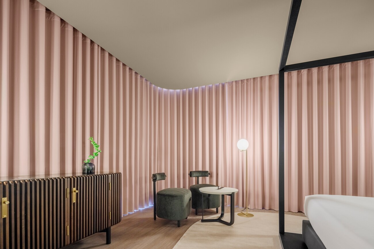 Each room is allowed to open outwards through large French windows and at the same time to close with soft velvet curtains to ensure privacy and intimacy.