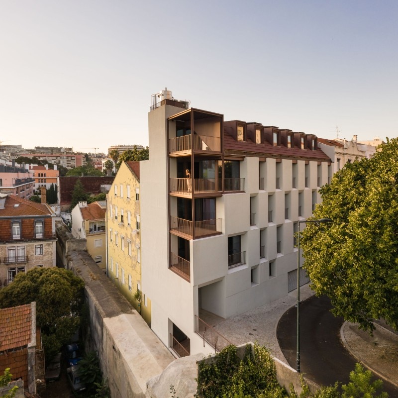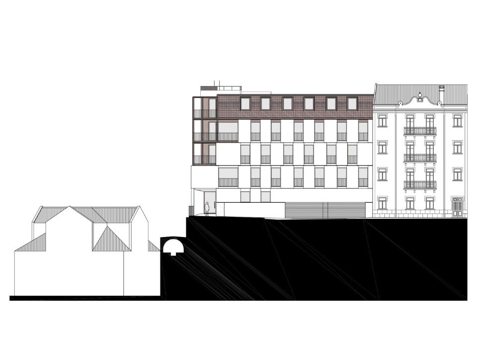 António Costa Lima Arquitectos designed a residential building next to Lisbon’s Águas Livres Aqueduct, an infrastructure built since 1732 to provide the city with drinking water. After the demolition of the pre-existing warehouse, By the Aqueduct project uncovers the Galeria da Esperança, a section of the historic aqueduct, now a monument to be preserved because of the numerous constructions above it.