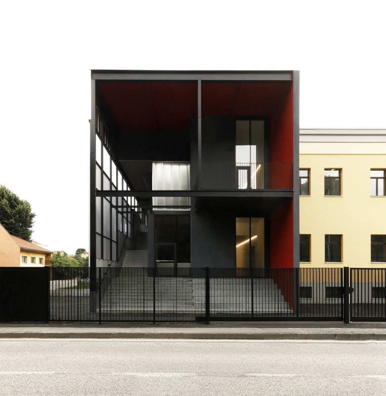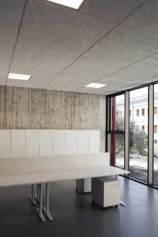 The complex issues we have mentioned were addressed by architect Giulia De Appolonia who a few kilometres from Brescia, Italy, completed the expansion of the Enrico Fermi secondary school.