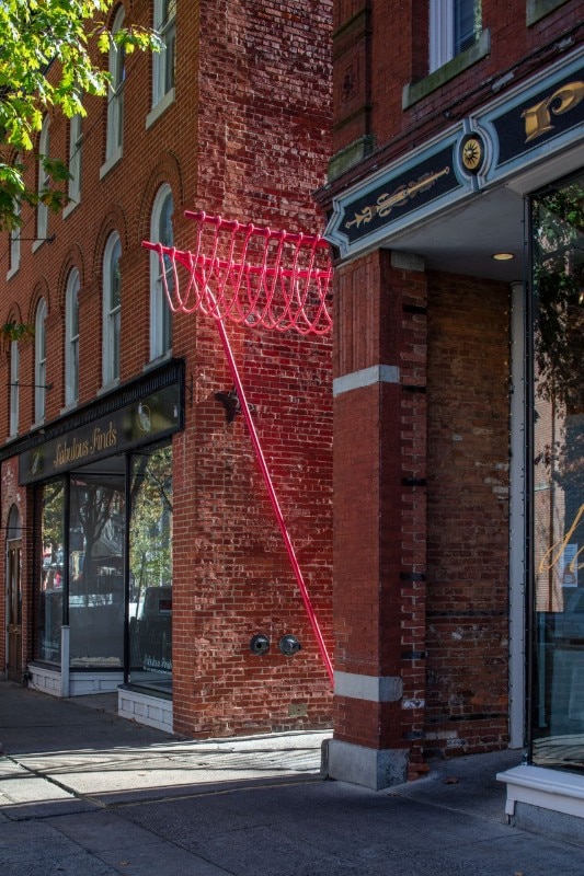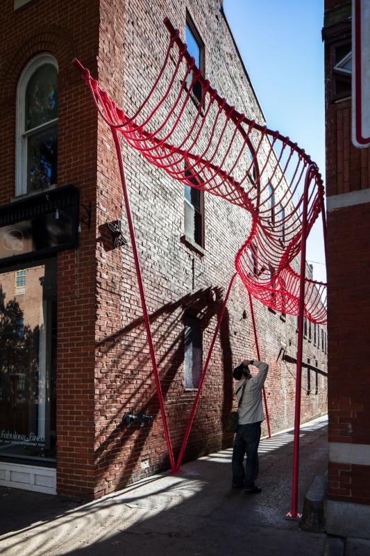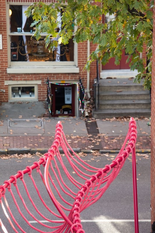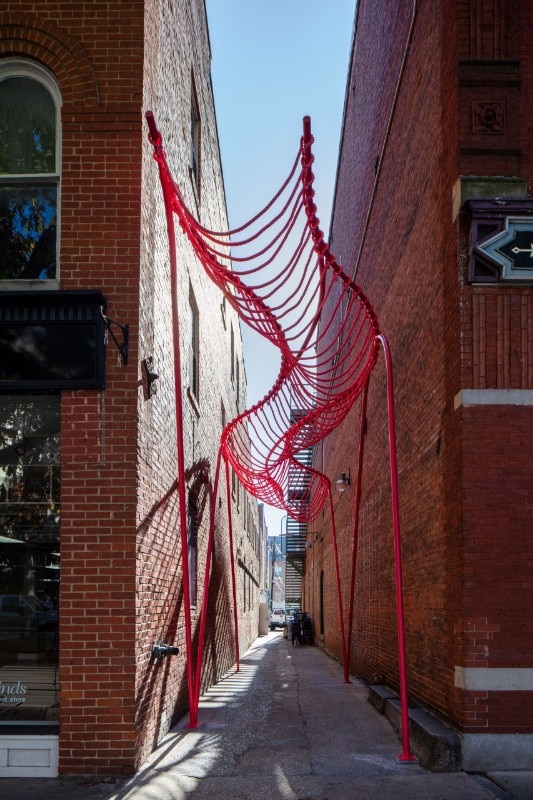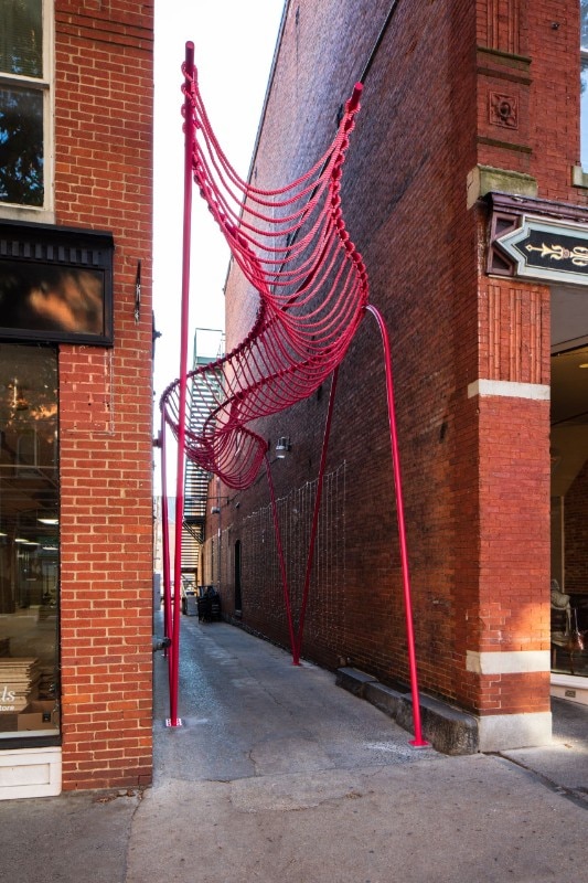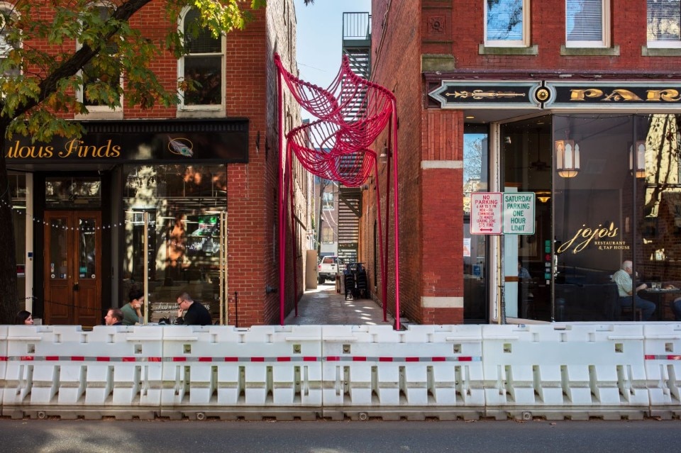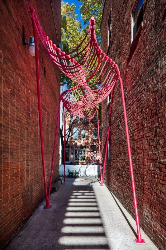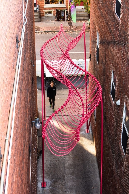 SomePeople, New York-based art and design studio, created a vibrant-pink urban sculpture in an abandoned alley in Downtown Frederick, Maryland. Happy Stripe is one of three projects selected in the 2019 competition for spatial installations in specific alleys with the aim to enhance the urban fabric.