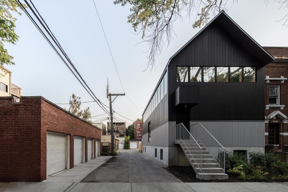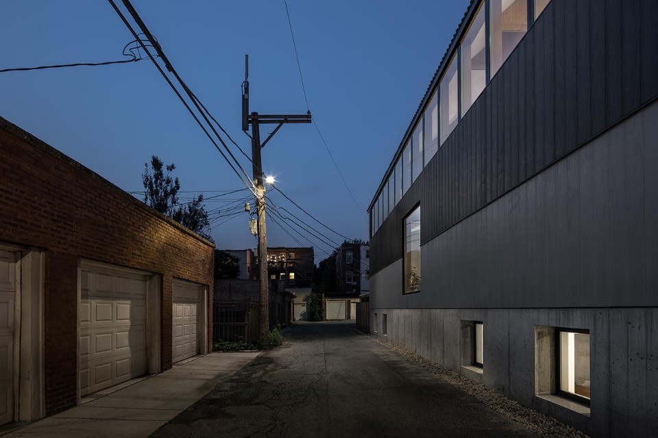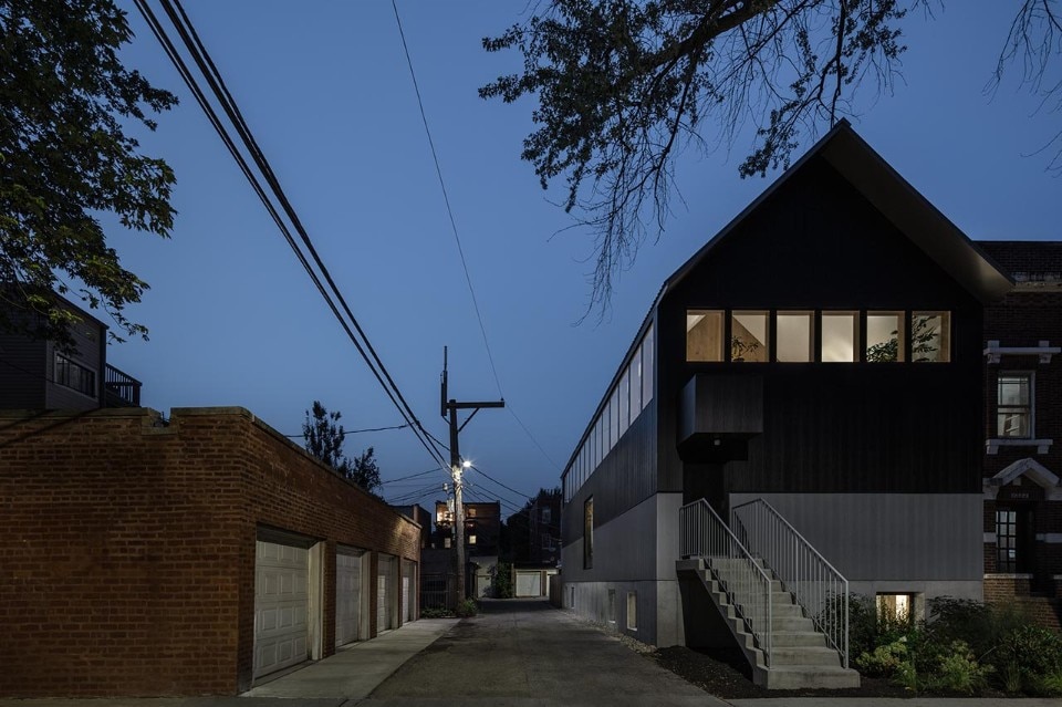 Built on a residential lot at the intersection of a street and an alley in Chicago, the Armour House by the duo of architects Kwong Von Glinow is a three-level building designed to enhance the quality of living in relation to a renewed condition of brightness, fluidity and space flexibility.