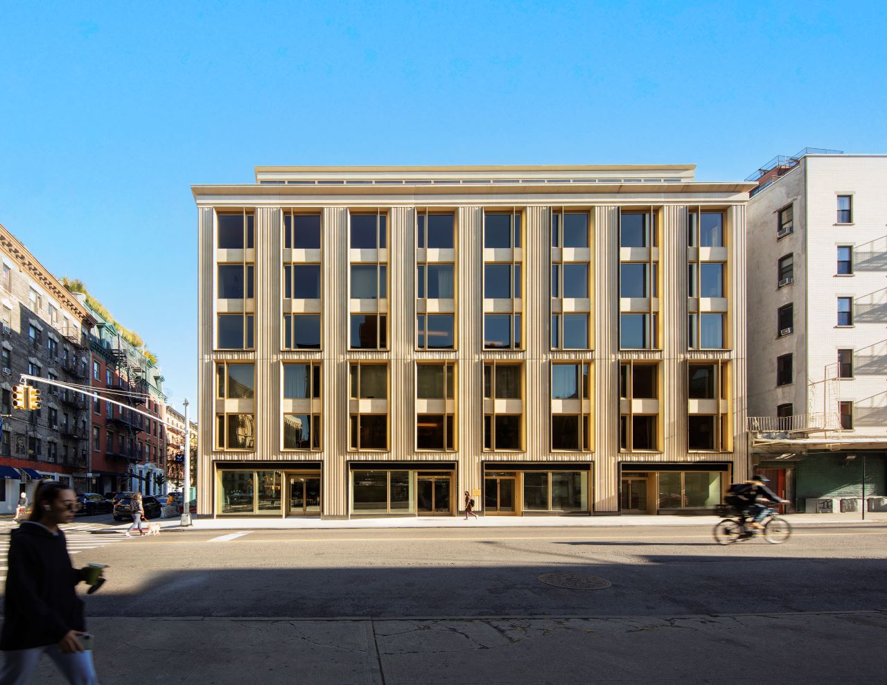 75 Kenmare is located in the heart of NoLita, a neighbourhood in the Manhattan district located north of Little Italy. Based on the concepts of materiality, solidity and proportion, the residential building designed by Andre Kikoski Architect comprises 38 flats ranging from 55 to 270 square metres, a green terrace on the top floor and a gym. At street level the complex also offers public spaces, such as a bar.
