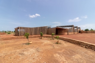 Construction detail of roof and joints made using a numerically controlled milling machine to cut the pieces to measure. They were then assembled by the local population.