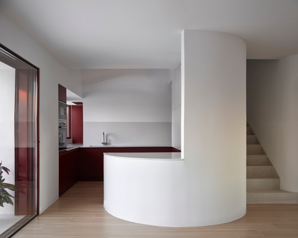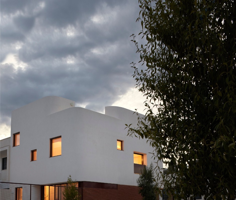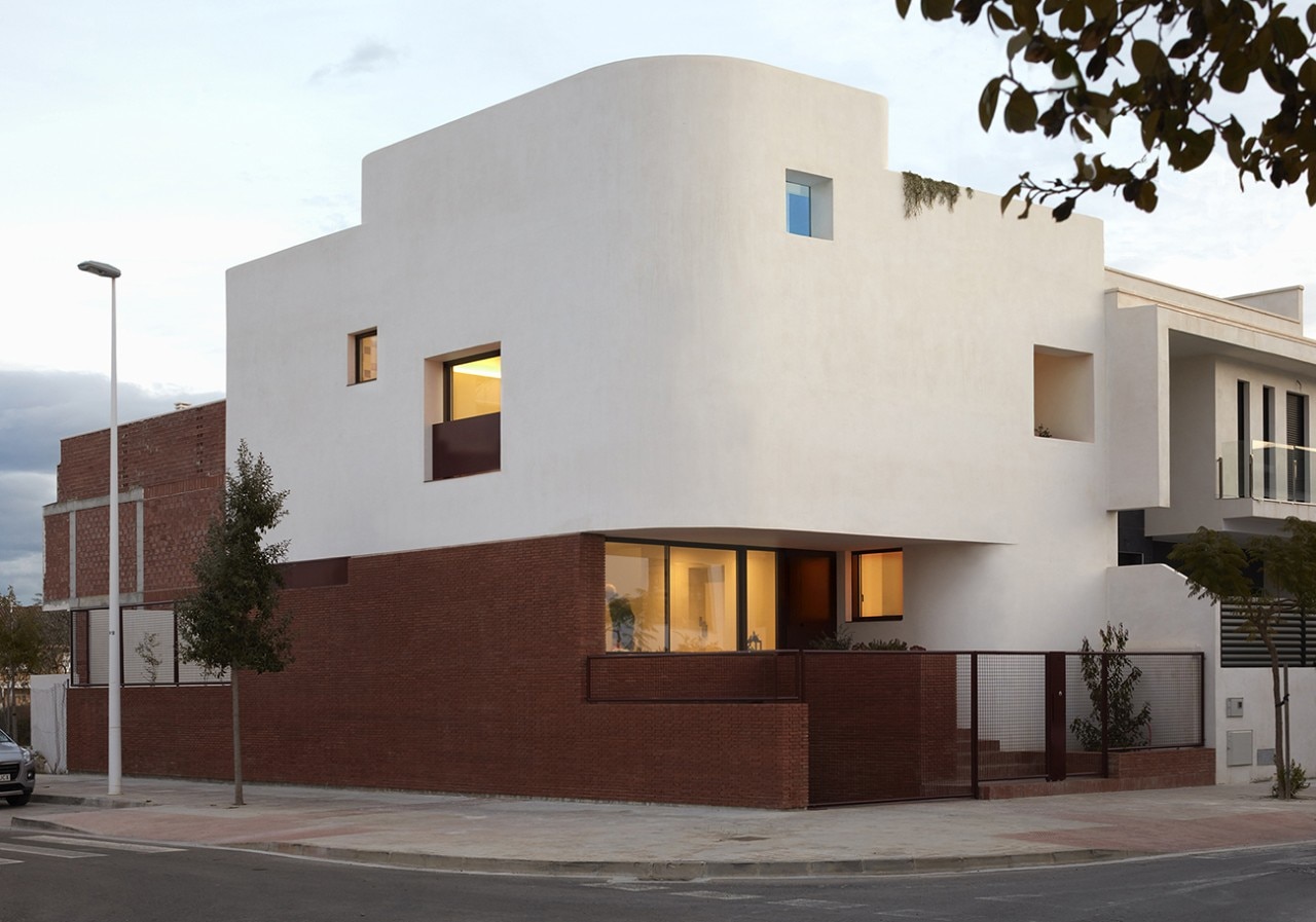 In the city of Sagunto, 25 km northeast of Valencia, Horma - estudio de arquitectura has created a project whose distinguishing feature is the curved line. The red brick plinth, meticulously positioned on the façade and on the entrance to the home, supports the curved volume of smooth white cement which houses the first floor and the roof.