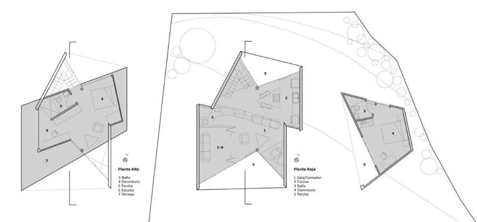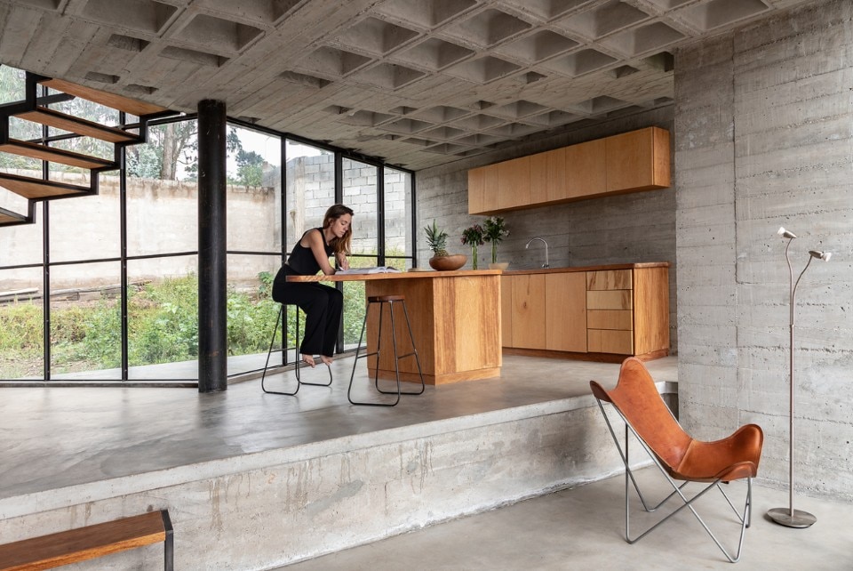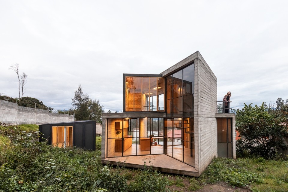 Casa Muta is thus an interlocking series of volumes with multi-faceted geometries, where opaque walls alternate with enormous glass surfaces and double heights with intersecting perspectives and openings onto the hilly Quito landscape.