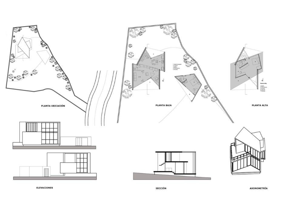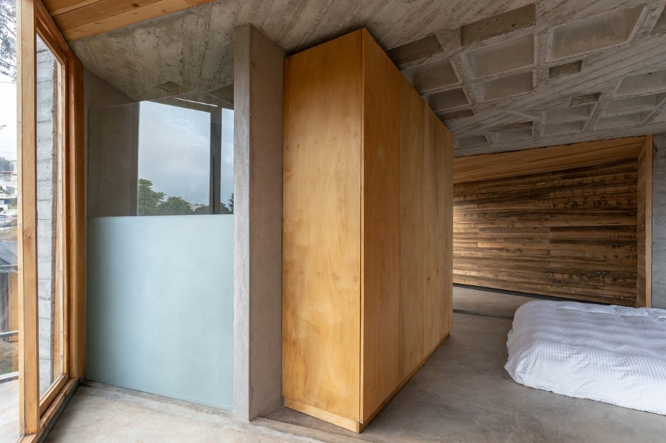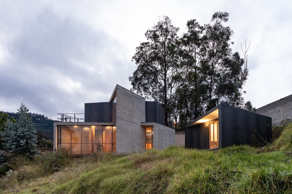 Casa Muta stands in a suburban area of the city of Quito, in the Nayón valley, on a sloping terrain with a view of the eastern Andean Mountains. The house was built at two different times, when the client's needs led to the addition of new volumes.