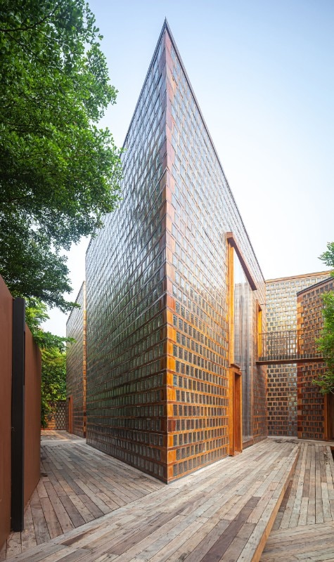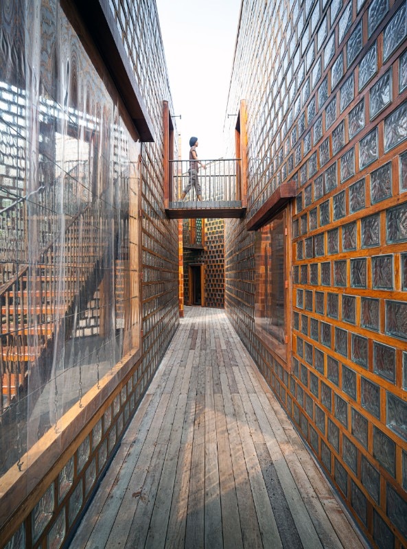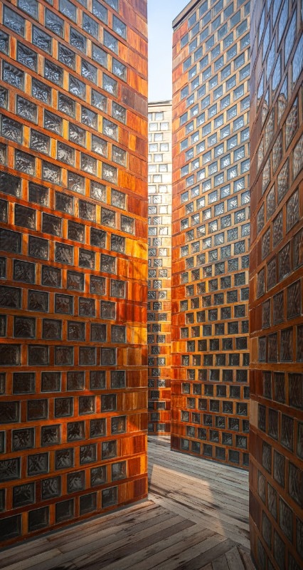 These glass block buildings, which glow in the daylight and light up at night, give the impression of being ever-burning lanterns, signifying that the people here are part of a collective history that is preserved and will not disappear with them.