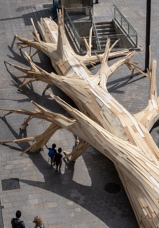The installations that animated the city are places “selected for their high landscape and ecological value”, explain the organizers. Ecology and design are key factors in this year's debate, while the design of the pavilions was oriented by principles such as reuse and recycling, using as main material wood panels produced by Garnica, a renewable, recyclable, reusable and biodegradable product.