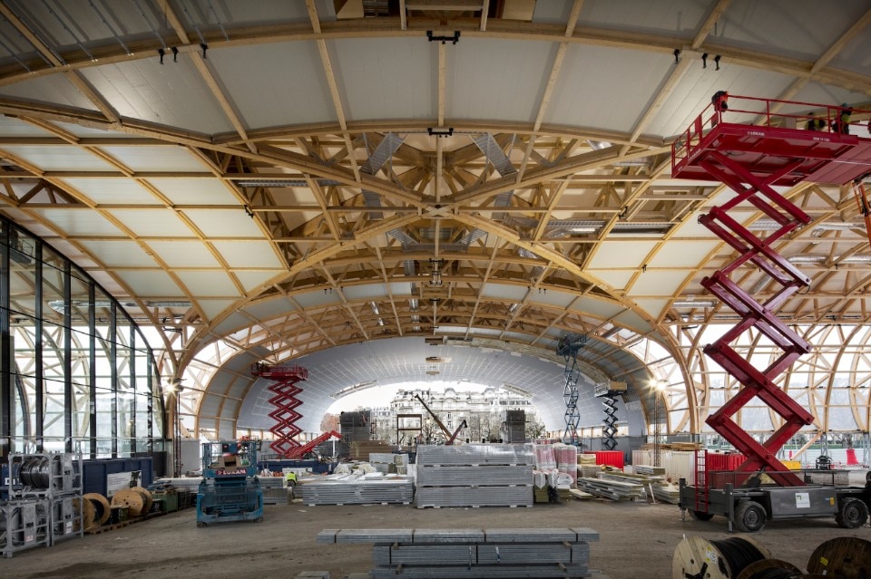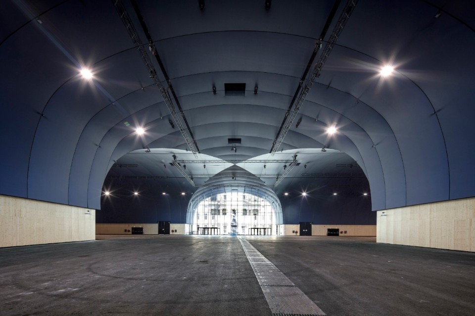 The architectural project was entrusted to the architect Jean-Michel Wilmotte who, taking advantage of the great historical background closely linked to the Universal Expositions that have animated the esplanade since 1867, retraces with the Grand Palais Éphémère a space with a main nave, with an uninterrupted span of 51 meters wide and 33 meters deep, without poles or structural elements that interrupt the space.